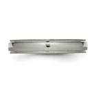 Finish:Polished|Band Width:4 mm|Material: Primary:Titanium|Ring Fit:Standard|Sizeable:No|Thickness:< 2 mm|Item Weight U/M:gm|Width of Item:4 mm|Engravable:Yes|Packaging:Gift Pouch|Product Type:Jewelry|Jewelry Type:Rings|Sold By Unit:Each|Gender:Unisex|Texture:Grooved|Material: Primary - Color:Grey|Ring Type:Wedding Bands|Edge Type:Beaded|Ring Shape:Half Round All weights and measurements are approximate and may vary slightly from the listed information. Welcome to diamond_6720 Payments We accept all Ebay approved payment. Please sent the payment to us within 8 days after the auction has ended, or you will have unpaid case auto open by eBay. Shipping Policy We will ship all items within 1 business days of purchase during the work week (M-F) excluding holidays. If you order on Friday, your order will be shipped the following business day. Tracking will be provided when it becomes available. We will only ship to a PayPal Verified Address. Please make sure your address is current and correct. If the information does not match, your order may be canceled. Buyers are responsible for all customs, duties and taxes for your respective countries. Delivery times for International Shipping will vary. California Buyers Pay 9.0% Tax on all orders. case auto open by eBay. Return Policy & Exchange Returns or Exchange are accepted. Buyer must contact us within 30 days after the item is received. Item must be returned in unworn and resalable condition. We will only issue a refund for the purchase price, excluding any shipping fees. If we are at fault, we will provide a full refund. Buyer is responsible for all return shipping costs. BUYERS FEEDBACK If you have any concerns regarding your purchase, please contact us via eBay Message, we assure you that a satisfactory resolution will be reached. Your feedback is very important to us Do remember to give us 5 star rating(*****) if you are satisfied with our product & service .