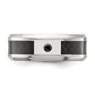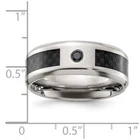 Finish:Polished|Stone Type_1:Cubic Zirconia (CZ)|Stone Color_1:Black|Stone Quantity_1:1|Material: Accent Color 1:Black|Band Width:8 mm|Stone Setting_1:Bezel Set|Material: Primary:Titanium|Sizeable:No|Stone Shape_1:Round|Stone Size_1:2.5 mm|Stone Treatment_1:Synthetic|Item Weight U/M:gm|Width of Item:8 mm|Packaging:Gift Pouch|Product Type:Jewelry|Jewelry Type:Rings|Sold By Unit:Each|Gender:Unisex|Material: Inlay:Carbon Fiber|Material: Primary - Color:Grey|Ring Type:Wedding Bands|Edge Type:Beveled|Stone Creation Method_1:Synthetic All weights and measurements are approximate and may vary slightly from the listed information. Welcome to diamond_6720 Payments We accept all Ebay approved payment. Please sent the payment to us within 8 days after the auction has ended, or you will have unpaid case auto open by eBay. Shipping Policy We will ship all items within 1 business days of purchase during the work week (M-F) excluding holidays. If you order on Friday, your order will be shipped the following business day. Tracking will be provided when it becomes available. We will only ship to a PayPal Verified Address. Please make sure your address is current and correct. If the information does not match, your order may be canceled. Buyers are responsible for all customs, duties and taxes for your respective countries. Delivery times for International Shipping will vary. California Buyers Pay 9.0% Tax on all orders. case auto open by eBay. Return Policy & Exchange Returns or Exchange are accepted. Buyer must contact us within 30 days after the item is received. Item must be returned in unworn and resalable condition. We will only issue a refund for the purchase price, excluding any shipping fees. If we are at fault, we will provide a full refund. Buyer is responsible for all return shipping costs. BUYERS FEEDBACK If you have any concerns regarding your purchase, please contact us via eBay Message, we assure you that a satisfactory resolution will be reached. Your feedback is very important to us Do remember to give us 5 star rating(*****) if you are satisfied with our product & service .