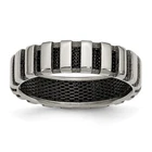 Finish:Polished|Plating:IP-Plated|Material: Accent Color 1:Black|Band Width:6 mm|Material: Primary:Titanium|Ring Fit:Standard|Sizeable:No|Thickness:< 2 mm|Item Weight U/M:gm|Width of Item:6 mm|Engravable:Yes|Packaging:Gift Pouch|Product Type:Jewelry|Jewelry Type:Rings|Sold By Unit:Each|Gender:Unisex|Material: Inlay:Wire|Material: Primary - Color:Grey|Ring Type:Wedding Bands|Edge Type:Grooved|Plating Color:Black All weights and measurements are approximate and may vary slightly from the listed information. Welcome to diamond_6720 Payments We accept all Ebay approved payment. Please sent the payment to us within 8 days after the auction has ended, or you will have unpaid case auto open by eBay. Shipping Policy We will ship all items within 1 business days of purchase during the work week (M-F) excluding holidays. If you order on Friday, your order will be shipped the following business day. Tracking will be provided when it becomes available. We will only ship to a PayPal Verified Address. Please make sure your address is current and correct. If the information does not match, your order may be canceled. Buyers are responsible for all customs, duties and taxes for your respective countries. Delivery times for International Shipping will vary. California Buyers Pay 9.0% Tax on all orders. case auto open by eBay. Return Policy & Exchange Returns or Exchange are accepted. Buyer must contact us within 30 days after the item is received. Item must be returned in unworn and resalable condition. We will only issue a refund for the purchase price, excluding any shipping fees. If we are at fault, we will provide a full refund. Buyer is responsible for all return shipping costs. BUYERS FEEDBACK If you have any concerns regarding your purchase, please contact us via eBay Message, we assure you that a satisfactory resolution will be reached. Your feedback is very important to us Do remember to give us 5 star rating(*****) if you are satisfied with our product & service .