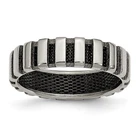 Finish:Polished|Plating:IP-Plated|Material: Accent Color 1:Black|Band Width:6 mm|Material: Primary:Titanium|Ring Fit:Standard|Sizeable:No|Thickness:< 2 mm|Item Weight U/M:gm|Width of Item:6 mm|Engravable:Yes|Packaging:Gift Pouch|Product Type:Jewelry|Jewelry Type:Rings|Sold By Unit:Each|Gender:Unisex|Material: Inlay:Wire|Material: Primary - Color:Grey|Ring Type:Wedding Bands|Edge Type:Grooved|Plating Color:Black All weights and measurements are approximate and may vary slightly from the listed information. Welcome to diamond_6720 Payments We accept all Ebay approved payment. Please sent the payment to us within 8 days after the auction has ended, or you will have unpaid case auto open by eBay. Shipping Policy We will ship all items within 1 business days of purchase during the work week (M-F) excluding holidays. If you order on Friday, your order will be shipped the following business day. Tracking will be provided when it becomes available. We will only ship to a PayPal Verified Address. Please make sure your address is current and correct. If the information does not match, your order may be canceled. Buyers are responsible for all customs, duties and taxes for your respective countries. Delivery times for International Shipping will vary. California Buyers Pay 9.0% Tax on all orders. case auto open by eBay. Return Policy & Exchange Returns or Exchange are accepted. Buyer must contact us within 30 days after the item is received. Item must be returned in unworn and resalable condition. We will only issue a refund for the purchase price, excluding any shipping fees. If we are at fault, we will provide a full refund. Buyer is responsible for all return shipping costs. BUYERS FEEDBACK If you have any concerns regarding your purchase, please contact us via eBay Message, we assure you that a satisfactory resolution will be reached. Your feedback is very important to us Do remember to give us 5 star rating(*****) if you are satisfied with our product & service .
