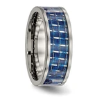 Titanium Polished with Blue Carbon Fiber Inlay 8mm Flat Band Ring Size 11