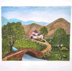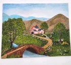 HomeToni A. Painting Landscape House Woods Bridge Original Signed Folk Art 20"x16"