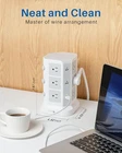 18 IN 1 Power Strip- Integrating 12 Outlets and 6 USBs together : tower power strip, the answer to all your charging needs, is a versatile, sophisticated, and intelligent charging dock. It integrates 12 AC outlets and 6 USB charging ports within one charging station, allowing you to connect and charge up to 18 devices simultaneously, even where space is limited. It is an ideal all-in-one solution. INDIVIDUAL SWITCH DESIGN : The power strip accompanied by USBs and outlets has an individual power control switch on each level, 3 in total, making it easy to turn off multiple electronics at once when not in use. The cable core made of pure copper is sturdy, durable, and safe to use. The 2-Meter long cord can meet most usage scenarios and can accommodate your instant charging needs. SUPERIOR SECURITY : The 1500 J built-in surge protector protects all the attached devices effectively and keeps them safe from voltage spikes, even during thunderstorms. The overload protection button switches off automatically when the total power of the device exceeds 1875W and thus, completely protects you and your electronic devices and appliances. HIGH-QUALITY MATERIALS : Owing to the advanced flame retardancy of the PC material (UL 94V0 standard) and the ABS shell, the Power Strip Tower is fireproof, high-temperature resistant. The premium-grade material employed significantly increases the lifespan of the sockets, ensuring the safety of your gadgets and short circuit protection. REAL SPACE SAVER : Equipped with an assortment of 12 AC sockets and 6 USB ports, this innovative power strip has sockets perpendicularly positioned to the floor, maximizing space compared to the conventional models. The ergonomic spacing and orientation of the sockets will allow better organization of the space as the whole system can be tucked away neatly into tight spaces and corners.