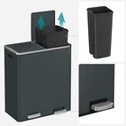 Brand unbranded Capacity 16 Gallons Color Silver and Black Opening Mechanism Step-On Material Powder-Coated Stainless Steel Bin, PP Plastic Inner Bucket, ABS Plastic Lid Recommended Uses For Product Kitchen Room Type Kitchen Special Feature Designed to handle your waste and recyclables, SONGMICS trash can with two separate compartments is a perfect refuse solution for sorting recyclables, compost, and other garbage. Designed to handle your waste and recyclables, trash can with two separate compartments is a perfect refuse solution for sorting recyclables, compost, and other garbage. Shape Rectangular Finish Type Brushed About this item [A Boon for Your Kitchen] Your garbage can doesn’t have to look like garbage; with silver and black colors and a simple silhouette, this step trash can will be an eye-catcher in your kitchen [Hands-Free Operation] It’s hard to open the lid of a rubbish bin with your hands while you’re eating, and that’s why we designed this trash can with a pedal, letting you have your hands free to tuck away your waste. Inner bucket size: 10.6”L x 10.6”W x 23”H (27 x 27 x 58.5 cm) [Strong yet Soft] The rigid stainless steel body of this garbage can withstands long-lasting use; the soft-close lid ensures the environment remains peaceful, with no loud slamming to be heard Bucket in Bin: This trash can includes 2 removable buckets for easy cleaning if your garbage bag accidentally breaks and spills; the buckets come with convenient metal handles so you can lift them out [What You Get] A dual trash can sized at 23.2”L x 12.8”W x 25.7”H with 2 x 8-gallon compartments, 15 trash bags, plastic inner buckets, and a soft closure mechanism for easy waste disposal