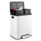 Trash Can, 2x4 Gal Dual Garbage Can & Recycle Bin With 2 Removable Inner Buckets