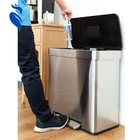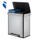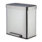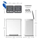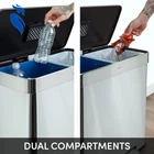 Our Qualiazero 16 Gallon Dual Compartment Step On Trash & Recycling Can includes two removable, leak-proof inner buckets - black for trash and blue for recyclables! Our activated carbon filter deodorizer absorbs unpleasant odor and keeps your kitchen smelling fresh! Its large capacity is perfect for any size family and each compartment is compatible with any standard 10-gallon trash bag. Great for the kitchen or any high-traffic areas. The sturdy foot pedal controls the lid smoothly and keeps your hands free. Upon release of the foot pedal, the lid closes softly and silently without slamming shut. Crafted from commercial-grade stainless steel, our step can is built to withstand everyday consistent use and is smudge resistant - meaning it will stay clean longer! The two inner bins slide smoothly in and out of the trash can for easy trash and recyclable removal and convenient bag changes with no mess. For regular cleaning, use a damp microfiber cloth to effortlessly wipe clean! Ideal for kitchens. Dual Compartment Design: Includes two removable, leak-proof inner buckets—black for trash and blue for recyclables—for easy sorting. Activated Carbon Filter Deodorizer: Absorbs unpleasant odors to keep your kitchen smelling fresh. Large Capacity: Total of 16 gallons, perfect for any family size. Each compartment fits standard 10-gallon trash bags. Hands-Free Operation: Sturdy foot pedal allows smooth lid control, keeping your hands free and hygienic. Soft-Close Lid: Lid closes softly and silently without slamming after releasing the foot pedal. Durable Construction: Made from commercial-grade stainless steel to withstand daily use. Smudge-Resistant Finish: Resists fingerprints and smudges, keeping the can looking clean longer. Easy Maintenance: Inner bins slide in and out smoothly for effortless trash and recycling removal. Simple Cleaning: Easily wiped clean with a damp microfiber cloth. Versatile Placement: Ideal for kitchens and high-traffic areas.