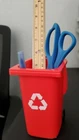 Trash Can Pencil Holder Recycle Bin Red Wheels Lid Desktop Toy Container