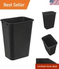 Trash Can, Rectangular Commercial Office Wastebasket, 10 Gallon Pack Of 1, Black Previously Commercial product VERSATILE USAGE: Ideal for 10 gallon trash bin needs in offices, public spaces, restaurants, schools, hospitals, and other high-traffic areas DURABLE CONSTRUCTION: Crafted from co-polymer polypropylene plastic, this 10 gallon trash can withstands everyday wear and tear for lasting performance EASY MAINTENANCE: Features a smooth finish on this bathroom garbage can that allows for quick and simple cleaning with a damp cloth CONVENIENT STORAGE: The lightweight and nestable design of this slim trash can allows for easy storage and transport alongside matching bins NOW BASICS: Previously Commercial product, now Basics This plastic trash can, featuring a recycle bin logo, is perfect for managing waste in offices, public spaces, restaurants, schools, hospitals, and other high-traffic areas. Crafted from durable co-polymer polypropylene, this medium trash can withstands the rigors of everyday use. Its smooth finish makes cleaning effortless; simply wipe it down with a damp cloth to keep it looking pristine. Designed for convenience, its lightweight, nestable design allows for easy storage and transport, optimizing space efficiently with matching bins.