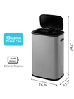 Sensor Trash Can: Our motion sensor trash can uses advanced automatic sensing technology, the lid will remain open if your hand stays around the infrared motion sensor, providing a comfortable user experience. The lid will automatically close after 5 seconds of leaving. If you want the lid to stay open, just gently touch the open button on the left. Hands-free Operation Kitchen Trash Can: The lid automatically opens with just a hand movement! Avoid contact with pathogenic bacteria on the surface of the trash can; it's a hygienic and convenient choice. Advanced Technology: Delayed sensing technology prolongs battery life and prevents unnecessary opening by pets, children or passers-by. Soft-close feature prolongs product life. Easy to Clean and Odor Isolation: The trash can with lid has a smooth surface and is easy to clean. The sealed exterior and infrared technology ensure odor suppression. Battery-Powered Automatic Trash Can: No annoying wires are needed. Requires 4 AA batteries (not included) Color: Dark Gray Lid: Yes On Jul 12, 2024 at 21:15:57 PDT, seller added the following information: