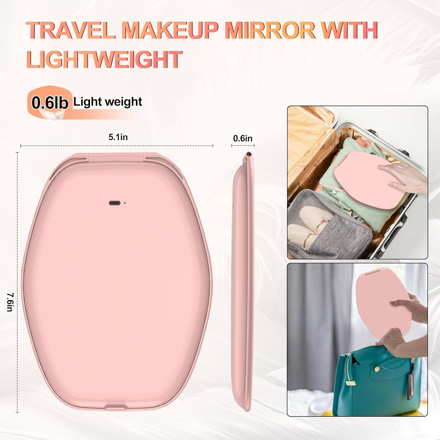 3 Color Lighted Makeup Mirror: This vanity mirror with 72 LEDS features 3 different lighting - cold light, natural light and warm light. Cold light is great for use in office. Natural light is perfect for use in the outdoor. Warm light is great for parties or dinners Dimmable Touch Screen:This light up mirror by the highly sensitive touch control lets you adjust the brightness to your liking. Hold the screen touch button for seconds to dim or brighten the light Portable&Convenient: Our LED makeup mirror is designed to be compact and travel-friendly. With dimensions of 5*7 inches and weighing only 280 grams, it is slim, lightweight, and easily foldable, making it even more convenient to carry around. Therefore, it easily fits into your bag or suitcase, allowing you to do your makeup on the go Rechargeable Makeup Mirror: The travel vanity mirror with a built-in 1000mAh lithium battery comes with a Type-C charging cable, the LED makeup mirror can be used continuously for up to 2 weeks in full charge. A good ideal for travel, home, or any cosmetic occasion. Travel essential for women Perfect Gift: The cosmetic mirror is made of high-quality ABS and glass material, without any magnification and distortion. Perfect gift for daughter, girls friends, wife, mother and yourself. Product Description