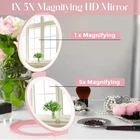 Travel Mirror with Lights 7 inch Rechargeable LED Makeup Mirror with Magnification 1X/5X Sleek Lighted Portable Cosmetic Foldable Mirror Touch Screen 3 Color Lights and Brightness Adjustable Product Details Color: Pink Brand: THE GODDESS THEORY MPN: Rm364 UPC: Does not apply EAN: Does not apply Brand: THE GODDESS THEORY Room Type: Bathroom, Dressing Room, Living Room, Bedroom, Home Office Shape: Round Product Dimensions: 7"L x 6.3"W Frame Material: Glass Brand: THE GODDESS THEORY Room Type: Bathroom, Dressing Room, Living Room, Bedroom, Home Office Shape: Round Product Dimensions: 7"L x 6.3"W Frame Material: Glass Style: Modern Mounting Type: Tabletop Mount Surface Recommendation: Glass Special Feature: 2 sided Color: Pink Theme: Travel Specific Uses For Product: Makeup, personal beauty, professional makeup, grooming Number of Pieces: 1 Number of Items: 1 Material: Glass Frame Type: round Assembly Required: No Frame Color: Pink Magnification Maximum: 5 x Manufacturer: The Goddess Theory Co Item Weight: 1.09 pounds Country of Origin: USA Item model number: Rm364 Date First Available: October 28, 2023 Travel Mirror: Featuring built-in LED lights, this led makeup mirror with lights provides enhanced visibility and illumination, specifically designed for travel purposes. This portable mirror with lights is easy to pack and carry during your journeys Stylish & Functional: The travel light up mirror for makeup is an amazing rechargeable LED mirror that adds a touch of style to your travel essentials. Our led travel mirror combines the convenience of a mirror with the benefits of LED lighting, allowing you to look your best wherever you go. Rechargeable Convenience: One standout feature of these makeup mirrors is the rechargeable capability. With a built-in rechargeable battery, our led light mirror can easily power up the LED lights, eliminating the need for disposable batteries. Distortion-Free Glass: Our led mirror makeup is made of high-quality distortion-free glass and encased in a sleek durable frame. These light mirrors ensure clear and accurate reflection, allowing you to see every detail with precision. Portable Size: This travel lighted makeup mirror measures 7" x 6.3" which is a compact size and lightweight design, highly portable, and easily packed in your suitcase or carry-on. Our makeup light mirror is a versatile accessory that ensures you always have a well-lit mirror at hand.