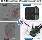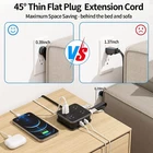 NTONPOWER 3 Side Outlet Extender - 8 Widely Outlets with 3 USB Ports Features: 【 Flat Plug Power Strip with 8 Outlets 3 USB Ports 】 The 3 Side outlet extender power strip 8 widely spaced AC outlets on 3 sides are separated enough to accommodate large plugs without blocking each other. The portable power strip features 3 USB ports totally provide 15.5W fast charging (5V 2.4A, 12W max).can power up to 11 devices simultaneously.Wide range voltage design, can be used on 120v to 240v circuit. 【 5 ft Wrapped Around Extension Cord 】 5 ft retractable extension cord with 45-degree right angled flat plug, it can easy wraps around the power strips’ body and plugs into a AC socket for neat storage.You will not get mad by the messy power cord, suitable for bedrooms, office.It is also very portable, and it is very suitable for traveling. 【 Compact Power Strip 】 The 3 side outlet extender extension cord size is (3.94*3.94*1.5Inch) .This desktop charging station is lightweight design to fit into backpack and suitcase .The widely spced AC outlets larger than standard socket - special design for big adapters.The compact design saves more space, suitable for the home nightstand, office, and college dorm room. 【 Wall Mountable & Right Angle Ultra Flat Plug 】 There are two mounting holes on back allows this power strip to be securely installed in various applications.The low-profile flat plug thickness is only 0.39inch, It is much thinner than traditional plugs, which can close to the wall easily, and hide in the back of furniture, bed or Nightstand, no waste for every inch space for your home. 【 Multi Safety Protection 】 This Flat Plug power strip has overload protection, short-circuit protection, over current protection, over-voltage protection and overheating protection. Overload protection ON/OFF switch will automatically cut power to protect connected devices when voltage surge is overwhelming.This portable extension cord without surge protector, so you can take it on the cruise and airplane without blocked by security inspection staff.