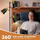 Stylish & Retro Design Flawless black spray paint matches partly brass making the standing lamp look exquisite and gorgeous. The retro floor lamp can turn your home decor into a vintage, rustic, mid-century modern, and farmhouse vibe. Bright Dimmable Floor Lamp: This floor lamp comes equipped with 4 bulbs for ultimate flexibility. Two bulbs feature 3-way dimming (Low/Medium/High), one bulb offers 3-color temperature settings, allowing you to freely mix and match bulbs to create two distinct light sources and atmospheres within a single lamp for any scene or mood. 3 Independent Rotary Switchs: Features simple knob switches conveniently located on the back of each lampshade. This industrial floor lamp easily rotate the knobs to turn lights on/off or adjust settings without bending down. Each of the three lamp heads operates independently for precise lighting control 360° Adjustable Lamp Heads: Enjoy maximum versatility with lamp heads that rotate a full 360 degrees. Easily direct light exactly where you need it for reading, tasks, or accent lighting, adapting to your space and needs effortlessly. Retro Two-Tone Design: Boasting a stylish retro two-tone finish, this floor lamp adds an elegant touch to your decor. Its timeless design seamlessly complements living rooms, bedrooms, home offices, studies, and other spaces seeking both function and sophisticated style. Stable Base & Ideal Height: Our modern floor lamp built with a solid, weighted metal base ensuring exceptional stability and preventing tipping. Standing at a practical 63.2 inches tall, it provides ample overhead illumination while maintaining a secure footprint.