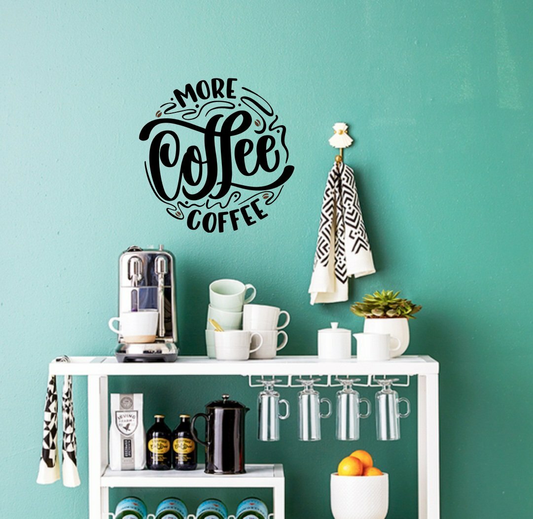 More Coffee Wall Decal Vinyl Sticker For Coffee Shop Bar Wall Graphic Decal Decor Vinyl Sticker ✅ At this time, I am listing this decal with black or white option. I have various color options listed in the photos. (☞ ͡° ͜ʖ ͡°)☞ If you prefer a different color other then black or white, please let me know when ordering. ✅ There are 2 different sizes to chose from. If these sizes do not work for you, please contact us. 💕 We will do our best to cut the size you need. Prices may vary. ✅ Vinyl wall decals are the latest trend in home decor. They are an inexpensive way to add style and personalize any room in your home. They are easy to apply and can be removed without any damage to the wall. Please a decal is removed, it cannot be reapplied. This decal would make an excellent gift for the one person that is so hard to buy for. Also would be a great wedding gift or house warming gift! To sum it up... (☞ ͡° ͜ʖ ͡°)☞. Our vinyl is high quality premiere US vinyl. (☞ ͡° ͜ʖ ͡°)☞. Your wall decal will be made to fit any clean, smooth, flat, light-textured surface. (☞ ͡° ͜ʖ ͡°)☞. Decals are fully removable but not reusable. (☞ ͡° ͜ʖ ͡°)☞. The decal is one solid vinyl color unless stated otherwise. The color of background is going to be a color of your surface which it is applied to. (☞ ͡° ͜ʖ ͡°)☞. Our products are made in USA. (☞ ͡° ͜ʖ ͡°)☞. Each and every decal is made to order. (☞ ͡° ͜ʖ ͡°)☞. We can customize all of our decals for free. If you have questions or concerns, please reach out to us via the “contact seller” button. (☞ ͡° ͜ʖ ͡°)☞. The vinyl quote displayed in the picture is for the purpose of showing the details of the lettering. It is not for representing the size of the quote in comparison to props, furniture, etc. and may be enlarged to show details. 🥰 We have other home decor items for a variety of uses and we are always adding more items regularly. Please favor ❤️ our store so you don’t miss out on any new listings! If you would like something custom or would like to order a large quantity of a certain item, please feel free to contact me for details. VISIT OUR SHOP: