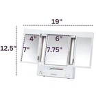 Return Policy Fast Delivery Trusted seller Tri-Fold Two-Sided Makeup Mirror with Lights - Vanity Mirror with 5X-1X Magnification & Multiple Light Settings - White - Model JGL9W Product Description 1 Made in US MULTIPLE LIGHT SETTINGS - This vanity mirror has 4 light settings, including day, evening, office, and home. Whether you prefer soft, warm lighting or glare-free fluorescent, this light-up mirror has the right option for you. COMPACT AND CONVENIENT - This trifold mirror's adjustable back stand offers 11 angles, making grooming and makeup application a breeze! The compact base includes a built-in electrical outlet and allows you to fold the mirrors in when not in use CLASSIC STYLE - This vanity mirror is a modern take on a timeless classic. The rectangle center mirror is similar to the classic Hollywood-style vanities while the outer mirrors provide additional angles and visibility. MAGNIFICATION OPTIONS - This makeup mirror has 2 magnification levels, 1X and 5X. The 5X makes tweezing and grooming easier while the 1X is perfect for basic skincare and makeup application. SPECIFICATIONS - This vanity mirror includes 3 mirrors with 1X and 5X magnification. The mirror has 4 light settings and includes a built-in electrical outlet that allows you to plug in hair curling irons and straighteners Shipping Returns Payment Shipping Shipping is FREE to all addresses other than APO/PO boxes in the lower 48 states. All our stock ships from US-based warehouses. Shipped via USPS or UPS (depending on location and package weight) Unless stated otherwise, all orders will ship within 24-72 hours of your payment being processed. Check our feedback to see the great reviews of FAST shipping we offer. Returns Seller does not accept returns Payment We currently accept payment via eBay managed payments only. Once payment is cleared, we will dispatch your shipment within 1-3 business days. Please refer to the "Shipping" tab for more information regarding shipping speed to your destination.
