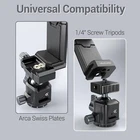 Tripod Phone Mount Holder with Sliding Cold Shoe,Universal Smartphone Mount Adapter with 1/4" Standard Screw&& Arca Swiss Quick Release Plate,Phone Tripod Mount Support Vertical/Horizontal Product Details Color: Black Brand: Leaplumin MPN: 1 UPC: Does not apply EAN: Does not apply Brand: Leaplumin Color: Black Compatible Devices: Smartphone Special Feature: Adjustable Material: Aluminum Maximum Height: 1 Feet Tripod Head Type: Quick Release Folded Size: [Estimated] 8 inches (l) x 3 inches (w) x 2 inches (h) Item Length: 3.7 Inches Manufacturer: Leaplumin Product Dimensions: 2 x 3 x 3.45 inches Item Weight: 5 ounces Item model number: 1 Date First Available: February 22, 2024 Manufacturer: Leaplumin Country of Origin: China [Unparalleled Expandability] Leaplumin HY-A1 Phone Tripod Mount offers unparalleled expandability by providing 4 1/4 inch screws to connect magic arms and 2 cold shoes to attach LED light panels or microphones. [Arca Swiss Quick Release Base] The Arca Swiss rail enables quick mount and release of the camera tripod. [Sliding Cold Shoe] The sliding cold shoe on the top allows you to easily adjust the length without interfering with the attached kits. [Full Aluminum Alloy Design] Made with premium Aluminum Alloy to provide incomparable durability for daily use. The screw-locking design offers a much more secure grip than the spring clamp. [Universal Compatibility] Extendable length from 2.2 inches to 3.7 inches, the cell phone mount is compatible with most smartphones including iPhone, Samsung Galaxy, Google Pixel, Sony Xperia, OnePlus, Moto, Xiaomi, etc.