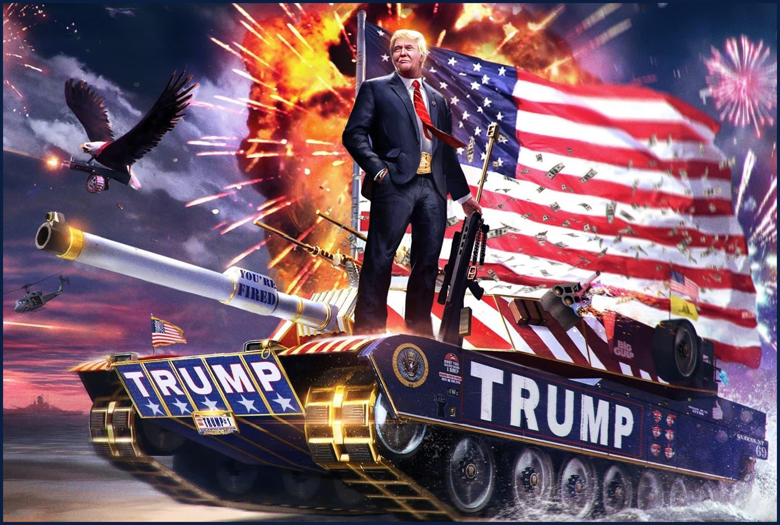 Trump Tank Eagle and American Flag Metal Poster MAGA Sign Trump Tank Eagle and American Flag Metal Poster MAGA Sign Handcrafted Metal Poster by Signs for Mankind. These are not "factory" signs. This is the brand new 2025 version of the popular Bigfoot design. Please read Item Description below before placing your order . Sign Details : * Signs are Brand New. * Measures 12" x 8" w/ Rounded Corners. * Pre-drilled Holes for Easy Display. * UV Coated Metal Plate with Light Gloss Finish. * Waterproof, Rustproof, All Weather Resistant. * Eye Catching Art to Accent an Area or Make a Statement. * USA Made on Sturdy, 0.025" Plate. This is 22 guage. (China imports are almost always 25 guage = .45mm, which is 30% thinner. They are called "tin" signs due to flimsy quality) THE FOLLOWING CONSTITUTES *ITEM DESCRIPTION* AND CONTAINS POLICY & PROCEDURE INFO: *Item Desc ription* In addition to artwork pictures and the bulleted "Sign Details" above, the following disclaimers apply to every item, in full disclosure: 1) Color : Some slight color variation is normal and should be expected , especially hues, shades, and tints. Printing to metal is not the same as printing to paper. It involves a 3 step, 4 color process with special inks under extreme heat, with subsequent cooling. Images on device screens display up to 16 million "colors," but 4-color "sub-ink" for metal can only produce16k. Also, like a wall of TV screens at a department store, different devices display different colors, according to internal settings and hardware/software components. I cannot compare your particular device to the finished product before I ship. Please do not order if you want or need colors to "exactly" match what you may see on your digital screen. I do not and cannot guarantee precise "color match" I do try to produce colors that are as close as possible to the master files, but even the masters look different when I view them on different devices. 2) Minor material flaws : The "unseen" silver side of the sign (that goes against your wall) will usually have small imperfections like thin scratches, little dimples, smudges or blemishes. This is due to the processing of raw metal sheets into individual plates, with the coatings required for a printable product. It is not an indication of "quality" nor does it signify a "used" item. I do not sell used products. These minor material flaws may not be suitable for absolute perfectionists, or those with OCD. My signs and prints are indeed "top quality," and "brand new," but will have some small material flaws to the naked eye, especially on the shiny metal side. The print side, however, is produced and packaged with the utmost care to protect your visible artwork. Purchasing Limit: The purchasing limit is 5 units per customer. Once we have established a positive transactional history, I may increase this limit for you. For first time buyers who wish to purchase more than 5 items at once, please message me with the specifics and I will create a single, custom listing tailored to your needs. We can also negotiate any volume discounts at this time. Multiple Purchases / Combined Shipping: I do offer fair discounts for multi-item purchases made at the same time. Also, "Combined Shipping" means that you make a SINGLE payment for multiple items, pay ONE shipping fee that results in ONE shipping label, and all of your items ship in a SINGLE package. Any shipping discount for "combined shipping" must be applied BEFORE you complete checkout . . If you order multiple items individually, then I will package and ship them individually. You cannot "combine shipping" on separate orders paid on separate invoices . For example, you cannot place an order in the morning, then place another order the same night, and then request to "combine shipping" after you have already paid for one or both orders. This is non-negotiable. Best practice is to keep items in your cart until you are 100% ready to complete your order and checkout. If you experience trouble with this process, contact me before you pay so I can try to help. Production, Processing, Shipping : Every sign I sell is individually hand crafted, "on demand." Turnover time is typically 1-2 business days, and I ship USPS. Please monitor your tracking and let me know immediately if there is an obvious problem with USPS service. I sell across a range of platforms, so I do not follow tracking for every package. I do not ship on weekends or holidays . I do make every reasonable effort to produce, process, and ship as quickly as possible. The post office does not always update tracking in real time. Sometimes USPS scanning is delayed until the package(s) reach a regional sort center, which normally happens within 8-12 hours of actual shipment. If you order late Friday night, for example, and do not see a tracking update Monday morning, please do not panic. Packages do not always scan in real time. Once you have received a tracking number, your order is in process and will update shortly. In addition to holidays, please be mindful that severe weather, emergency events, and natural disasters in different parts of the country may sometimes cause temporary postal service interruptions. Re-ship Policy: It is the buyer's responsibility to provide a complete and current shipping address. If a package is returned due to Wrong/Incomplete/Unknown/Insufficient address, and must be re-shipped, an additional shipping fee will be due, equal to the original shipping charge. Delivery Confirmation: The purpose of tracking is to provide proof of service and delivery. To this end, all parties rely on the carrier's scans, especially the final "Delivered" scan provided by your local neighborhood/route postal person. In all cases, this proof of delivery shall be considered final. I will not refund, reship, or investigate claims of non-receipt once delivery has been confirmed by your local post office. In cases where your item has been marked "Delivered" but you cannot loc
