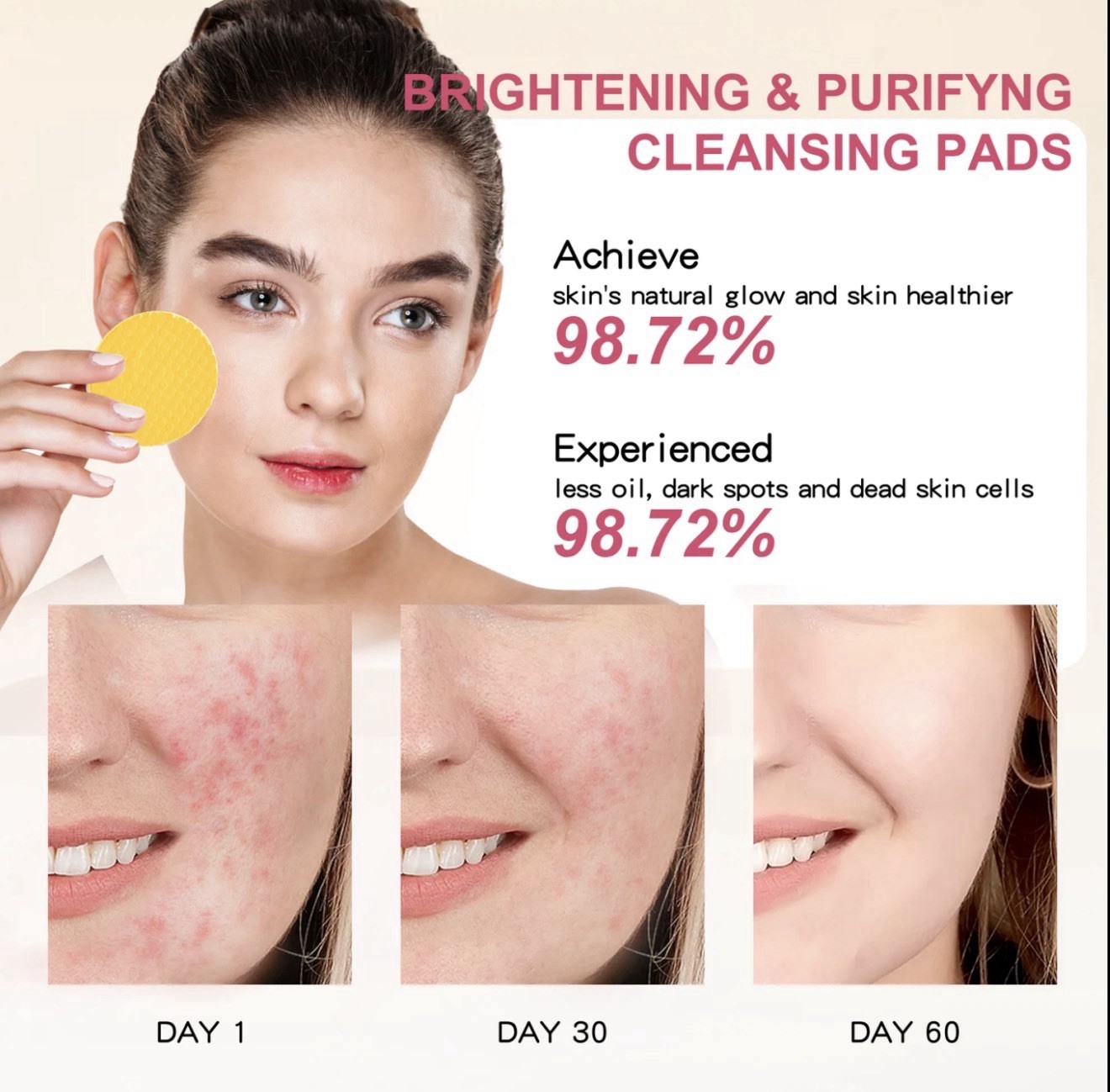 The Turmeric Kojic Acid Cleansing Pads are organic wipes infused with Vitamin C and lemon scent, designed for facial and body cleansing. The pack includes 100 pads, suitable for all skin types and recommended for adult use. These cleansing pads are ideal for removing dark spots and can be used on the face, body, and arms. With a 30-day money-back guarantee and free two-day shipping, these pads offer a convenient and effective solution for achieving a clearer and brighter complexion.