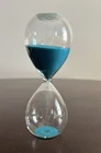 Add a touch of elegance to your home decor with this unique 10 minute hourglass/sand timer. The beautiful turquoise color of the sand and clear glass make it a stunning addition to any kitchen or living area. Measuring 6 inches in height and 2.25 inches in depth, this timer is perfect for keeping track of time without sacrificing style. Ideal for those who enjoy unique and beautiful home decor. Its 10-minute hourglass design allows you to keep track of time with ease, while the glass material adds a touch of sophistication.