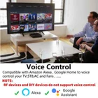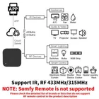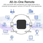 Product Features: With this Universal IR Remote Control, you can use your smart phone to control home appliances, such as STB(Set-Top-Box), TV Box, TV, Air Conditioner, Fan, DVD, and RF devices etc. Compatible with most of brands, for details, please refer to the supported brand list in App. Besides, it has LEARNING FUNCTON, allows you to copy the key function of original remote control to App. Note: Not compatible with the home appliances which use RF used Rolling coding or BLUETOOTH remote control. 1. Massive IR Code Database Support 4000+ brands, 50000+ IR Code on cloud, supported devices library is constantly being updated by the cloud. 2. RF(Radio Frequency) Copy and Repeat Support RF Copy and Repeat. So it can support Curtanins, Roller Shutter, Window Pusher,Hanger, Projection Screen, Garage Door, Retractable Door, RF Switch, and even customized button. 3. App Remote Control Remote Control your home appliances by using “Tuya Smart” App in your smart phone anywhere anytime. For example: Switch on home A/C in advance, enjoying the comfortable temperature once you get home. 4. Easy to install and connect to APP Use the latest Tuya chip. After power is supplied to it, the APP will automatically find it through Bluetooth. You can connect it to the "Smart Life" APP with just a few clicks on the screen. 5. Voice Control By connecting Intelligent speaker, such as Amazon Alexa, Google Home, you are able to control your home appliances by voice. 6. DIY Customizing buttons in the Tuya Smart App if your home appliances brand is not in the list or not supported. Product Parameter: * Input: DC 5V/1A(Micro USB NO Adapter) * IR(Infrared Frequency): 38KHz * RF(Radio Frequency): 433MHz and 315MHz * IR Remote Control Distance: 10m (Unobstructed environment) * RF Remote Control Distance: 100m(Unobstructed environment) * Connection: Wi-Fi 2.4GHz * App: Smart Life * Material: ABS * Size: 60*60*20mm Why choose this product? Say goodbye to use remote controls for each of the IR home appliances such as TV, Air-Conditioner , TV box, light, Fan, Audio, etc. You can remotely control these devices with the tap of your finger on the mobile App, also you control RF-enabeld devices like curtain, rooler shutter, garage door, RF switch, etc. Please kindly read the user manual carefully before usage and keep it for future reference. App Remote Control Turn on your air conditioner, no matter where you are. -Support 99% air conditioner in the market,automatic cloud panel match,one button download App to remote control -Turn on AC in advance, enjoy the warm time when you get home All in One Smart Remote Control The Smart IR Remote expanded IR code library cover above 98% IR device. So TV, Air conditioner, STB Fan and lighting etc. which used IR Control can be control by it.And RF-enabeld devices like curtain, rooler shutter, garage door, RF switch can be control by it. You don't need to worry about the problems you can't control, and finally we provide the copy function. Works with Amazon Alexa, Google Assistant By connecting App to Amazon Alexa, Google Home, you are able to control your home appliances by voice. For example: -Alexa, turn on the TV; -OK Google, set air conditioning temperature to 25 degrees. NOTE: 1. This product will not be displayed on Amazon Alexa and Google Home. Only the appliances remote added to our products are displayed on Alexa/Google Home/Yandex, and you can only control them by voice. 2. RF and DIY Device do not support Control Voice and can not support by Amazon Alexa , Google Home and Yandex Alice. Timer and Automatic Trigger Never miss one second of excellent match -Stay up late for the match,but always oversleep? -The smart remote control helps you turn on TV at right time and right channel. Enjoy your match! IR & RF Learning Function: Smar Life App provides Customizing and copy function. If your home appliances is not in the brand list or not supported, you may use this function to copy the key function of original remote control to App. NOTE: 1. DIY does not support voice control 2. Rolling coded RF cannot be learned RF Remote NOT SUPPORTED The following brands of RF remote controls or technologies are not supported by our products Wide IR Remote Control Range Control the IR home appliances within 10 Meters in one room, can be used in most of living rooms and bedrooms with wide range,fulfill requirements of most families. Control the RF home appliances within 150 Meters in the open space. The RF signal can pass through the wall, and the signal will become weak after passing through the wall. NOTE: 1. IR can not penetrate walls, so make sure there is no obstacle between IR remote and the IR devices. So,If you want to control household appliances in different rooms, you need to install one in each room 2. Metal will shield RF signals. Share the universal remote control with your family Var Smart Life APP, you can share it with family. Step 1: Create Home or Improve Home Information Step 2: Invite members to join Home Step 3: Family members agree to join Home Maybe every room needs one Infrared rays cannot penetrate the wall, so it cannot control household appliances in other rooms. RF can penetrate the wall, but the signal will be weakened. It is recommended to install a universal remote control in every room. NOTE: The Smart IR Remote can control multiple infrared remote control home appliances, the APP does not limit the specific number, but they must be in the same room. Which types are Remote Control support? The Smart IR&RF Remote supports all infrared remotes and Not Rolling coding RF remotes. But note that 2.4G remotes,and Bluetooth remotes are not supported. Tips: 1. The infrared remote control has an infrared emitting tube, or the infrared emitting tube is protected by a black transparent window. 2. Long press the infrared remote control to start the home appliance, the long press function is not supported, other functions are supported. 3. Rolling coding RF remotes are not