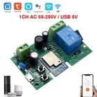 Product Application Area Factory \ Farm\ Office\ Instrument\ Ventilation \ Pump \ Motor \ Remote control garage door \ Remote control house door \ Remote control Lamp \ Remote control curtains \ Remote control Gate and other remote control device Tuya smart Jog Inching/ Self-locking WIFI Wireless Smart Home Switch Remote Control with Amazon Alexa This product is a wireless switch supports inching /self-locking mode. Users can add the device to the APP Smart life in order to remotely control connected home appliances or devices. In self-locking mode, customers can remotely turn on/off connected devices immediately. When in inching mode, customers can have two wiring ways to select, and you can set the inching time in APP . WIFi control model, no need to program. No matter where you are, you only need to download a APP to connect the wifi and control the cloud. RF mode , you can control the board with RF 433 remote controller. Only supports 433mhz learning code remotes. Features: *Supports WiFi network. Supports numerous WiFi smart switches on one smart phone. *Supports status tracking: device status timely provided to the Tuya / Smart life. *Supports remotely turn on or off connected appliances, for example light, electric kettle, electric rice cooker, electric curtain, etc. *Supports max 8 enabled scheduled/countdown/loop timers for each device. *Voice Control: Compatible with "Amazon" Alexa, for Google Home/Nest. Supported Functions Include: *Remote turn on/off. *Timing schedules. *Device sharing. *Group management. *Works with Amazon Echo, Echo Dot, Amazon Tap. *Works with Google Home. *Compatible with Amazon Alexa. Specifications: Supports to control different voltage ranges USB port power supply more convenient Relay lifespan: ≥one million times Working mode: inching / self-locking Wireless Standard: 2.4GHz, 802.11 b/g/n Mobile App: Tuya / Smart life on Android/IOS Application: access control, turn on PC, garage door, etc. Computer application: Remote control computer boot. Operating temperature: -40 degrees to +70 degrees. Operating Humidity 40%-80% RH. Default inching Function: Press the open relay by mobile phone, then cut off the pull-on imediately, you can set the inching time in APP , it has the timing-share function at the same time. Self-locking when press the inching and locking button with the light on. Press open relay to pull-on, press close relay to cut off. lnching Switch(Delay time 1s)Appilcation Scenarios Work For Door,Garage,Elevator,Rolling door,Computer,Car,Washing machine,Coffee machine etc. Self-locking Switch Application Scenarios Work For Light,Fan,Refrigerator,AC contactor,Water pump,Humidifier,Security sensor etc. Multiple control methods to enjoy smart life. APP Remote control, Voice control, 433 RF Remote Control. 1 Channel Channels: 1. Input voltage : DC/AC 7-32V , Micro USB 5V input. Output: Signal output only, no voltage output. Max current : 2200W/10A. WiFi standard : WiFi 2.4 ghz b/n/g. Size : 72*45*30. The life of Relay Model is more than 1,000,00. 1 Channel Channels: 1. Input voltage : AC 85V-250V . Output: Signal output only, no voltage output. Max current : 2200W/10A. WiFi standard : WiFi 2.4 ghz b/n/g. Size : 72*45*30. The life of Relay Model is more than 1,000,00. 2 Channel Channels: 2. Input voltage : DC/AC 7-32V ,AC 85-250V,Micro USB 5V input. Output: Signal output only, no voltage output. Max current : 2200W/10A. WiFi standard : WiFi 2.4 ghz b/n/g. Size : 100*35*20mm The life of Relay Model is more than 1,000,00. Default inching Function: Press the open relay by mobile phone, then cut off the pull-on imediately, you can set the inching time in APP , it has the timing-share function at the same time. Self-locking when press the inching and locking button with the light on. Press open relay to pull-on, press close relay to cut off. 433MHz Remote Control: Operating voltage: (Without battery), Transmitting frequency: 433MHz Encoding Type: Learning code Transmission distance : 10-100M (Open field) Size: approx 101*40*15mm NOTE: The system can store for 20 pcs of remotes , if the remote get more than 20 pcs , the initial remote control will be lost .