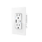 Tuya APP Smart WiFi USB In-Wall Oulet/Socket, 5V 2.4A USB Charger Outlet, Amazon Alexa & Google Home Supported, ETL&FCC Listed Specifications: Power Supply: Netural+live wire Rated Current: 15A(Max) PD20W . Fast Charge. -- USB A: 5V/3A , 9V/2A,12V/1.5A ---Type-C,20W Max ,5V/3A , 9V/2.22A,12V/1.67A Rated Voltage: Lable mark AC 90V-125V, actually, it also work with 90-250V Rated Power: 1500W(Single) 2500W(Double) Wireless Standard: Wi-Fi 2.4GHz USB Port: 5V/2A Material: PC&Glass Panel Color: White Product Dimensions: 119x70x47MM ( 4.69x2.76x1.85inch ) Remote Access: With Smart Life APP. Smart WiFi Wall Outlet can control your lights and appliances connected to the smart Socket on or off wherever you have Internet from your smartphone or tablet by using the free app (smartlife ) from Android or IOS devices. Note: The WiFi Standard is 2.4GHz. Voice Control: Support voice control with Amazon Alexa or Google Assistant after successful connection. Make your life more convenience and leave your hands free.For example: when you Walk into a dark house to Turn on the Light by voice control , Just Say "Tun On the Light" , it will Turn ON automatically , a very warm smart outlet. High Speed USB Charging: One USB flash charging ports (5V/2A) offer you various equipment energy supply. Especially for Smart Phone and Tablet device Child safe: Tamper-Resistant duplex receptacle increases safety by preventing unwanted objects from being inserted into the outlets to protect children safe. Sharing Function: Share the devices with your family members, permit other members of your family access to device, Convenient, fast and intimate. Features: Certificate ROHS/FCC, install quickly, no hub required Schedule automatically,Never come home to a dark house. Easy to Set Up,5 steps to install the outlet according to Install Instruction and then download the smartlife APP into your smart phone according to User guide. If the wifi wall Outlet is installed correctly, the indicator light will be on. It is visible in normal light but might be hard to see in a brightly lit room. When connect to wifi, please confirm the indicator light blinks rapidly. Short press the button means ON/OFF;Press and hold one button for about 7s until the wifi LED repaid flashes. Package included: 1xSmart WiFi Wall Outlet, 2xScrews, 1xUser guide, 1xInstall instruction