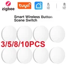 Tuya ZigBee Smart Push Button Scene Switch Wireless Remote Control on Off Key Controller Multi-scene Linkage Smart Switches Notes: Need to be used with zigbee gateway. Control tuya smart's devices. Description: 1. 【Custom/Key Operation Scene mode】 Smart scene button, matching the smart scene, one key to open the smart scene. You can freely set scenes or lights on TUYA Smart. In the scene mode, the button respectively support single click, double click scene requirements. You don't need to click the scene mode on your phone, just click the ZigBee smart remote control to open the smart scene. For example, movie mode: turn on the TV, turn off the lights in the living room, draw the curtains, turn on the TV ambient light, and turn on the audio. Simply click the remote control button to do it easily. 2. 【Can control any smart device (provided by TUYA)】 Control lights, electronics and small appliances from anywhere. 3. 【Ultra-low energy consumption, battery-powered】 the battery life can be up to 1 years, without frequent battery replacement. No wiring required. 4. 【No need to install】 Can be hung on the wall, can also be placed on the table, and you can get it at your fingertips! Specifications: Power supply: Battery CR2032 3V DC (the battery is not included in the package) Communication: Zigbee 3.0 Control distance: 25m open area Dimensions: 50mmx50mm Operating temperature:-10°C-45°C Working Humidity: <90% RH Life of battery: 1 years (General use) Package Included: 1*scene botton 1*manual