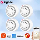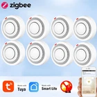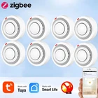 Tuya Zigbee Smart Smoke Detector Smart Life APP Remote Control Fire Alarm Home Security Smoke Sensor Work With Zigbee Gateway Description: 1.Tuya Smart ZigBee Smoke Detector:A Tuya ZigBee Wireless Gateway Hub is a must to work with the smoke detector sensor,as well as a variety of ZigBee smart products. 2.Professional design, fast perception of fire supported that ensures high sensitivity of smoke and temperature, effectively reduce false positive rate and make the police more accurate. 3.App Push Notifications and Control:Compatible with Smart Life and Tuya App enables the timely discovery of danger of fire or smoke and real- time notifications to your smart phone. 4.Low power design and long battery life for this ZigBee new version with low voltage monitoring prompt function available. 5.Real-time Voice Alarm Prompt with Wide Range:This smart smoke detector owns the wide monitoring range of3m ahead,and it will intelligently and quickly issue more than 85dB alarm sound and push notification to you App automatically. Specifications: Product name: Zigbee Smoke Alarm Input voltage: DC3V LR03 Quiescent current: ≤ 35uA Alarm current: ≤100mA Battery: 2*1.5V AA battery (Not include) Low voltage and undervoltage: ≤2.4V Alarm sound pressure: 80db/1m Wireless Technology: ZigBee Transmission Frequency: 2 .4GHz Detection range: 20 square meter Installation method: ceiling installation Working temperature: -10°C~ 50°C Working humidity: up to 95%RH Material: Plastic Size: 80x38mm/3.15x1.50in Color: White Package Included: 1*Zigbee smoke detector 1*User's Manual Notes: Notes: This product needs to be used with ZigBee3.0 gateway.
