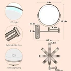 Two-Fingers-Width Narrow Base Rechargeable Wall Mounted Lighted Makeup Mirror,3 Color Lights Dimmable Touch Screen,8 Inch LED Double Sided 1X/10X Magnifying Mirror 13 Inch Retractable Product Details Size: 10X Color: Brushed Nickel Brand: Rocollos MPN: RM0002 UPC: Does not apply EAN: Does not apply Brand: Rocollos Room Type: Bathroom Shape: Oval Product Dimensions: 13"L x 10"W Frame Material: Metal Brand: Rocollos Room Type: Bathroom Shape: Oval Product Dimensions: 13"L x 10"W Frame Material: Metal Mounting Type: Wall Mount Finish Type: Brushed Surface Recommendation: Metal Special Feature: Foldable Color: Brushed Nickel Theme: Leaves Specific Uses For Product: Makeup, Shaving Number of Pieces: 4 Number of Items: 1 Material: Metal Frame Type: Framed Assembly Required: No Manufacturer: Rocollos Item Weight: 2.59 pounds Country of Origin: China Item model number: RM0002 Batteries: 1 Lithium Polymer batteries required. (included) Date First Available: November 12, 2022 Type-C Rechargeable & Convenient to UseRocollos magnifying mirror with light has built-in 2000 mAh rechargeable Lithium battery with a type-C cable included (charger is not included). No need to replace batteries! No internally installed cords in your walls! So you can conveniently install your mirror on every corner at home! Warm Using TipsWhen using 10 magnifying mirror, keep your face within 4 inch away from the mirror for clearness. And please make sure all accessories ready before you start to install. The battery power of the mirror may not be full when it arrives, so please fully charge it before using for the first time! 8 Inch with Double Side 1X/10XThis cosmetic lighted magnified mirror is 8 inch large and double sided with 1X/10X magnification. 1X lighted mirror side is designed for your overall facial makeup while 10X magnifying beauty mirror on the back is designed to show details of your face. When brushing eyeliners, drawing eyebrows, or putting on lipsticks. its perfect for you to put on a delicate makeup. Please keep 4 inch distance when use the lighted 10x magnifying mirror to avoid dizziness. Dimmable & 3 Color LightingThis wall vanity mirror offers white lights, warm lights, and natural lights. Simply change different light effects to satisfy your different makeup needs or test your makeup effects in different light situations by clicking the switch on mirror: white light satisfies your daily makeup need and office light situatuion; warm light for party or clubing makeup; and natural light for date or outdoor makeup. 360Flexible Swivel & ExtendableThe magnifying mirror with extendable arm allows you to fix your mirror to the optimal position for perfect viewing. Adjusting the arm to any angle you desire. You can also fold the mirror on the wall to save space when you are not using it. Perfect Gift & Outstanding ServiceRocollos wall mount makeup mirror is a perfect Christmas Gift for friend, family, and lover. Rocollos provides 7/7/24 customer services and 12-months warranty. If you have any questions please feel free to contact us!