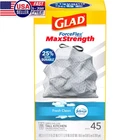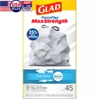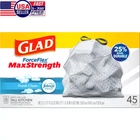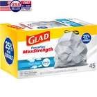 Welcome to buy your favorite products in Mr. John's eBay store. I sell brand new, unopened genuine products, all made in the United States and shipped from the United States. Please contact me for any questions about the products (pre-sales consultation, after-sales problems). You can tell me anything, as long as you are willing to let me know, I will reply within 24 hours, thank you! Note: Due to my carrier restrictions, some addresses may not be delivered. The probability is very small, about 2%. If unfortunately I cannot deliver to your address, I will contact you immediately and give you a full refund , thank you! ! Highlight s 25% MORE DURABLE*: Glad® ForceFlex MaxStrength Tall Kitchen Trash Bags are 25% more durable versus Glad® 13 gallon ForceFlex tall kitchen bags; packaging may vary FORCEFLEX MAXSTRENGTH: These bags feature double side seams, a reinforced bottom and grips the can drawstring plus Leak and rip protection against leaks, rips and tears NEUTRALIZES TOUGH TRASH ODORS: Febreze freshness in a subtle Fresh Clean scent works to trap odors and helps eliminate garbage smells in the kitchen PRODUCTS WITH LESS PLASTIC: Glad® ForceFlex MaxStrength Tall Kitchen Trash Bags are made with less plastic than the competition** without sacrificing strength DOING MORE TO WASTE LESS: If everyone in the US chose Glad® drawstring trash bags it would save 100 million pounds of plastic from going into landfills every year** Description Glad ForceFlex MaxStrength Tall Kitchen Trash Bags provide strength and Febreze Freshness to help keep your kitchen smelling fresh and clean. These 13 gallon bags are 25% more durable* with an outer leak protection layer and an inner layer that stretches to prevent rips and tears. Febreze freshness in a Fresh Clean scent provides odor neutralization against even the toughest kitchen smells. The drawstring grips to the trash can, keeping the bag in place. With double side seams and a reinforced bottom, these tall kitchen trash bags are made with 100% renewable electricity. And heres something cool: if everyone in the U.S. chose Glad drawstring trash bags it would save 100 million pounds of plastic from going into landfills every year**. Certain trademarks used under license from The Procter and Gamble Company or its affiliates. *Vs. Glad 13 gallon ForceFlex bag. **Based on IRI sales data. Glad Kitchen drawstring bags are made with 7% to 22% less plastic vs top 10 competitors. Usage Directions: Secure the bag by pulling up on the drawstring and lift the bag from the container. Knot the drawstrings for added security. Carry the bag by the drawstrings to the curb. Caution Statements: WARNING: Plastic bags can be dangerous. To avoid danger of suffocation, keep all plastic bags away from babies and children. DO NOT USE FOR FOOD STORAGE.
