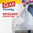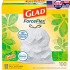 Welcome to buy your favorite products in Mr. John's eBay store. I sell brand new, unopened genuine products, all made in the United States and shipped from the United States. Please contact me for any questions about the products (pre-sales consultation, after-sales problems). You can tell me anything, as long as you are willing to let me know, I will reply within 24 hours, thank you! Note: Due to my carrier restrictions, some addresses may not be delivered. The probability is very small, about 2%. If unfortunately I cannot deliver to your address, I will contact you immediately and give you a full refund , thank you! ! Highlights FORCEFLEX STRENGTH: Glad’s trusted ForceFlex technology allows the bag to stretch and expand over heavy loads with sharp edges, delivering durable strength; packaging may vary GAIN ORIGINAL SCENT: Enjoy the steady release of Gain Original scent with Febreze Freshness, a delightful addition to your kitchen or household environment 2 LAYERS EXTRA LEAK PROTECTION: These kitchen trash bags are designed to uniquely trap liquids and prevent leaks and are strong enough to handle the heaviest loads ODOR PROTECTION: Provides lasting freshness with OdorShield® technology that traps, locks and neutralizes kitchen odors, helping to keep your kitchen smelling clean GRIPS THE CAN DRAWSTRING: The durable 3-ply drawstring design grips the can so the bag stays in place, and makes it easy to close and easy to carry out the trash, with no fear of leaks or tears Description Let the stretchable strength of Glad® ForceFlex handle all the messes our busy daily life can throw at it and then some. Glad® Tall Kitchen Drawstring Trash Bags are designed with ForceFlex technology to give extra flex as it expands around sharp edges and heavy loads, so you can pack it in while resisting tears, rips and punctures. These trash bags are designed with two layers for extra leak protection. RipGuard® and LeakGuard® technology prevent seepage of liquids and keep trash contained. Fight nasty kitchen odors with the exclusive Glad® trash bag combination of steady release of Febreze freshness and irresistible Gain Original scent that traps, locks and neutralizes odors. The durable Grips The Can Drawstring ensures a tight grip on the trash can to keep it in place. Take the trash to the curb with no fear of leaks and tears, and no frustration. FEBREZE and GAIN are used under license from The Procter & Gamble Company or its affiliates. Usage Directions: Lift the trash bag from the container by pulling the drawstrings on either side of the bag. Knot the drawstrings for added security. Carry the bag by the drawstring and toss into garbage. Caution Statement: Plastic bags can be dangerous. To avoid danger of suffocation, keep all plastic bags away from babies and children. DO NOT USE FOR FOOD STORAGE.