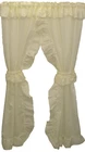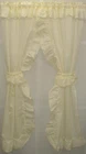 Transform your room with these beautiful ruffled curtains from Ellis Curtain. The Stacey Priscilla design features a light filtering transparency that provides a warm and cozy ambiance. The curtains come in a lovely ice cream beige color, with a 70% Polyester and 30% Cotton material, which is perfect for any room in your house. Measuring at 54" x 84", these curtains come with an attached valance and matching tiebacks. The curtains have a delightful classic country style, making them suitable for all ages, from kids to adults. This classic solid poly/cotton blend priscilla curtain pair dresses a window just right and allows for light to come in.