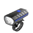 Solar Power Bike Headlamp with Horn USB Charging LED Bicycle Light 250LM Waterproof Bike Flashlight Bicycle Accessories Features: 1.Dual-Beam Illumination: Equipped with both high-beam and wide-angle lights, this bike headlight ensures long-distance visibility and a broad field of illumination for safer riding in all conditions. 2.Hybrid Charging Options: Featuring Type-C USB and solar charging capabilities, this bicycle headlamp offers versatile and convenient recharging options, ensuring you're never left in the dark. 3.Strap-On Installation: The LED bicycle light's band-style fitting system allows for quick and easy mounting, making it user-friendly for cyclists of all skill levels to attach and remove as needed. 4.Light & Horn Combo: This MTB road bike front lamp and horn setup saves handlebar space and reduces the overall weight on your bicycle, streamlining your ride and keeping essential functions within easy reach. 5.Weatherproof Durability: With its excellent sealing properties, this bike handlebar flashlight stands up to rainy conditions, giving you the confidence to ride in wet weather without compromising your light's performance. Specification: Origin: Mainland China Body Material: ABS Color: Black, Red, Blue Body Size (Excluding Base) : Approx. 94mm (3.70in)*40mm (1.57in)*38mm (1.50in) Net Weight: About 83g Lamp Bead: 2*LED Headlight Gear: High-Light - Low-Light - Flashing Lamp Brightness: 250LM Speaker Decibel: 120bd Battery Capacity: 1200mAh (Delivery Includes Battery) Charging Mode: Type-C USB Charging Note: Due to the different monitor and light effect, the actual color of the item might be slightly different from the color showed on the pictures. Thank you! Please allow 1-2cm measuring deviation due to manual measurement.