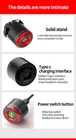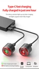 Features: Battery: 350 mA/7-30H Lumen: 30LM Charging: Type-C charging When the battery level is below 30%, the red light flashes and the alarm is triggered. When charging, the red light is on and the full charge green light is on 6 Lighting Modes: constant light - slow flashing - breathing - fast flashing - running horse - tai chi Material: Aluminum alloy shell Installation: double bracket for seat bow and seat rod, code table installation rotation