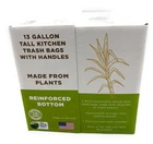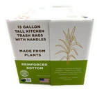 bags are certified by the USDA to be a bio based product. Each bag has unique handles to pull, lift, tie and carry heavy loads of trash. Our plant based bags, which are made from sugar cane, are the best alternative to traditional trash bags that are typically made from fossil fuels. By using these bags, you better the environment because our bags are renewable, 100% recyclable and reduces your carbon footprint. Our plant based bags are a carbon negative item; For every 1 kg (2.2 lbs) of raw plant material used to make our bags, we reduce CO2 emissions by 2.15 kg and reduce the consumption of fossil fuel by 2 liters. The entire product is proudly made in the USA. ☑️ USDA Certified Biobased Plant Product, Made from Sugar Cane ☑️ Carbon Negative Product ☑️ Designed, Made and Packed in the USA! ☑️ Bags are guaranteed to be stronger than leading competitors. ☑️ Strong handles to pull, lift, tie and carry heavy trash. ☑️ Size: 13 Gallon, fits standard household trash bins. ☑️ 100% Recyclable, Renewable, and Reduces your Carbon Footprint