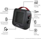CERAMIC SPACE HEATER – The Honeywell UberHeat small room space heater provides powerful warmth. It features a sleek, compact design and quiet operation that makes it the ideal heater for bedrooms, living rooms, family rooms and more. ENHANCED SAFETY – With our Safety Matters program, rest assured that your Honeywell Heater has innovative tried and tested safety features inside and out including a tip-over switch, 2x overheat protection, cool touch housing, and more. INCREASE YOUR COMFORT – This small room heater includes an adjustable thermostat with 2 comfort settings – high and low (1500/900 watts) – to help you customize your comfort. SMART SAVINGS – Worried about heating costs? An electric heater can help you save up to $246* in heating costs this year. A space heater for indoor use can help you save money while providing soothing warmth. HONEYWELL QUALITY – We know nothing is more important than your family’s safety. That is why with our Safety Matters program, we build Honeywell heaters to not only meet the industry standard safety requirements, but to exceed them. Always stay warm and comfortable with the powerful and cozy heat from the Honeywell UberHeat 5 Ceramic Heater. This small heater features easy-to-use manual controls with 2 comfort settings (high and low). The adjustable thermostat provides customized comfort, making it ideal for personal and small room heating. When it comes to your family, safety matters. This portable room heater offers added protection with multiple safety features including a tip-over switch, 2x overheat protection, a high-grade plated switch, thermal insulated wiring, reinforced wire connections, high-temp plastic, and cool-touch housing. Worried about heating costs? We know money is tight but staying warm and feeling safe is important. That's why we go above and beyond with our safety features. Plus, with a Honeywell space heater, you can save up to $276* in heating costs this year. By turning down your whole house thermostat a few degrees and heating just the room you are in, a Honeywell air heater can help you save money while providing soothing warmth. That's Honeywell Heater peace of mind. *Calculation Assumes 8 hrs/day use * 7 days a week @ 900 watts * $0.1380 avg kwp * 12 weeks to zone heat and thus decreasing thermostat from 70 to 62 degrees with energy costs from US Energy Information Administration; October 2021; Winter Fuels Outlook