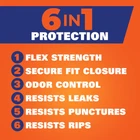 Trust Ultra Strong Tall Kitchen Trash Bags to keep your kitchen waste contained, all the way from can to curb. Thanks to 6 in 1 Protection, these tough drawstring trash bags offer flex strength, a tough drawstring, odor control, and resistance to punctures, leaks, and tears providing the highest protection available in a flexible garbage bag. stretchy strength means you don't have to worry about unexpected bag breakage and inconvenient messes. Don’t be afraid to use these kitchen trash bags for tougher jobs, such as garage, basement, and construction cleanup. A break-resistant grip drawstring makes it easy to close the bag and cart it away without incident. As a bonus, these scented trash bags include patented Arm and Hammer continuous odor control and Fabuloso scent to keep unpleasant smells at bay. 13 Gallon Garbage Bags: This package contains 120 Ultra Strong white, Fabuloso scented, 13 gallon kitchen trash bags Toughness You Can Trust: strongest tall kitchen trash bags deliver toughness you can trust with a secure, break-resistant drawstring and superior durability Arm and Hammer Continuous Odor Control and Fabuloso Scent, Patented odor control, paired for the first time with the joyful scent of Fabuloso, leverages the power of Arm and Hammer to fight nasty odors and keep your kitchen smelling fresh 6 In 1 Protection: These kitchen garbage bags offer a powerful combination of six features that keep garbage where it belongs: flex strength, tough drawstring, patented odor control, resistance to leaks, puncture protection, and rip defense
