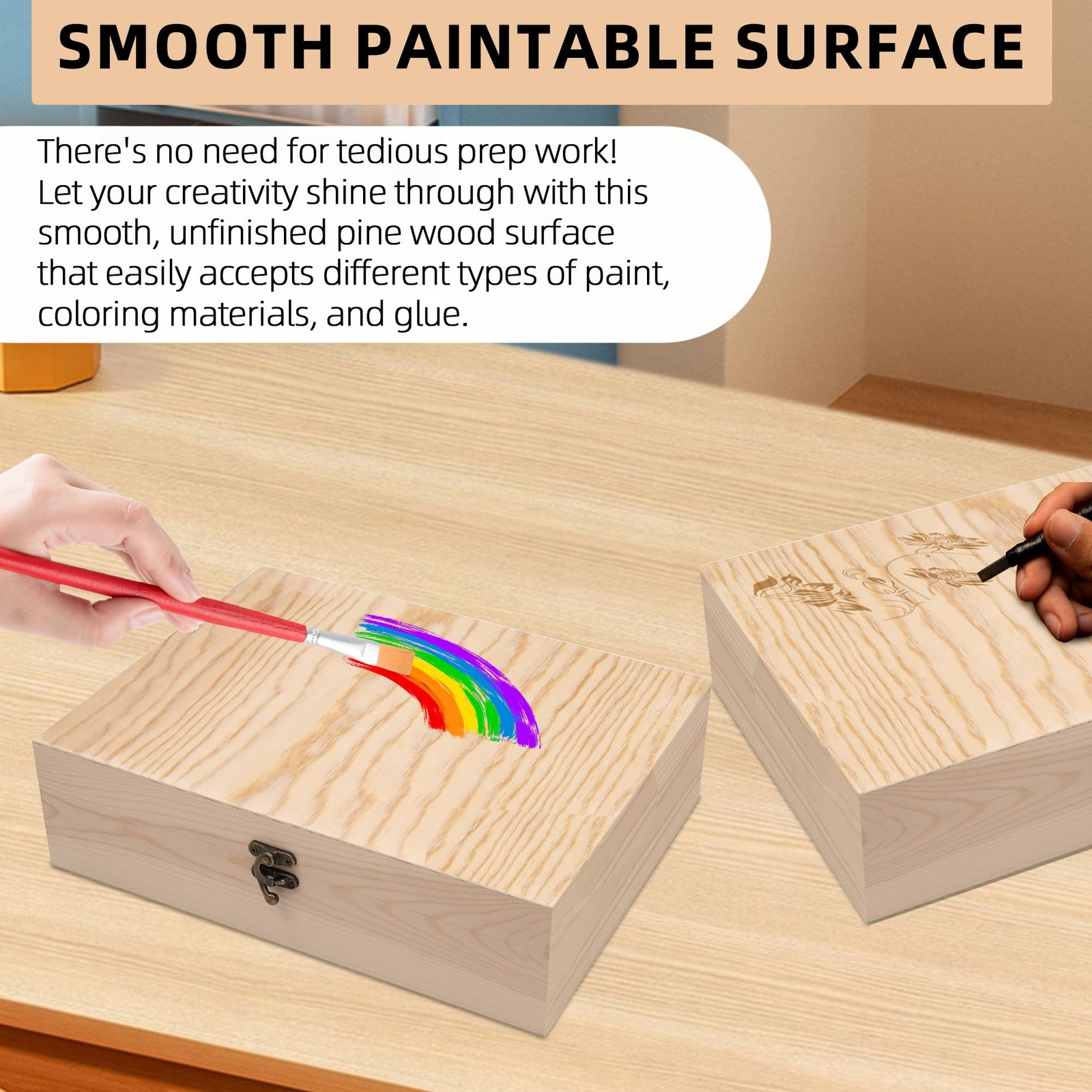 Unfinished Wooden Box with Hinged Lid for Crafts DIY Storage Jewelry Pine Box 12 Spacious yet lightweight, this wooden box is perfect for your storage and craft needs. This is the perfect size box for jewelry storage, DIY and craft projects, and as a gift box. With durable hinges and retro front clasps - The hinges are durable, appropriately sized for the lid, and can hold the lid flat when opened. The clasp provides a secure seal without it being tedious to open. Made of high-quality pine - The smell of pine is unmistakable! It has the rustic appeal of high-quality wood that is smooth, free of knots and is splinter-free. Smooth paintable surface - There's no need for tedious prep work! Let your creativity shine through with this smooth, unfinished pine wood surface that easily accepts different types of paint, coloring materials, and glue. This surface is also perfect for engraving and small pyrography projects. Spacious yet lightweight, this wooden box is perfect for your storage and craft needs. This is the perfect size box for jewelry storage, DIY and craft projects, and as a gift box. With durable hinges and retro front clasps - The hinges are durable, appropriately sized for the lid, and can hold the lid flat when opened. The clasp provides a secure seal without it being tedious to open. Made of high-quality pine - The smell of pine is unmistakable! It has the rustic appeal of high-quality wood that is smooth, free of knots and is splinter-free. Smooth paintable surface - There's no need for tedious prep work! Let your creativity shine through with this smooth, unfinished pine wood surface that easily accepts different types of paint, coloring materials, and glue. This surface is also perfect for engraving and small pyrography projects. Shipping We offer FREE shipping on all orders! We ship within Three business days of payment, usually sooner. We use a selection of shipping services such as UPS, FedEx, USPS etc. We only ship to the lower 48 states, no APO/FPO addresses or PO Boxes allowed. Local pickups and combined shipping options are not provided at this time. Return You can return a product for up to 30 days from the date you purchased it. Any product you return must be in the same condition you received it and in the original packaging. Please keep the receipt. Payment We accept payment by any of the following methods: PayPal Please pay as soon as possible after winning an auction, as that will allow us to post your item to you sooner! Feedback Customer satisfaction is very important to us. If you have any problem with your order, please contact us and we will do our best to make you satisfied. Contact Us If you have any queries, please contact us via ebay. We usually respond within 24 hours on weekdays. Please visit our eBay store to check out other items for sale! Thank you for shopping at our store.