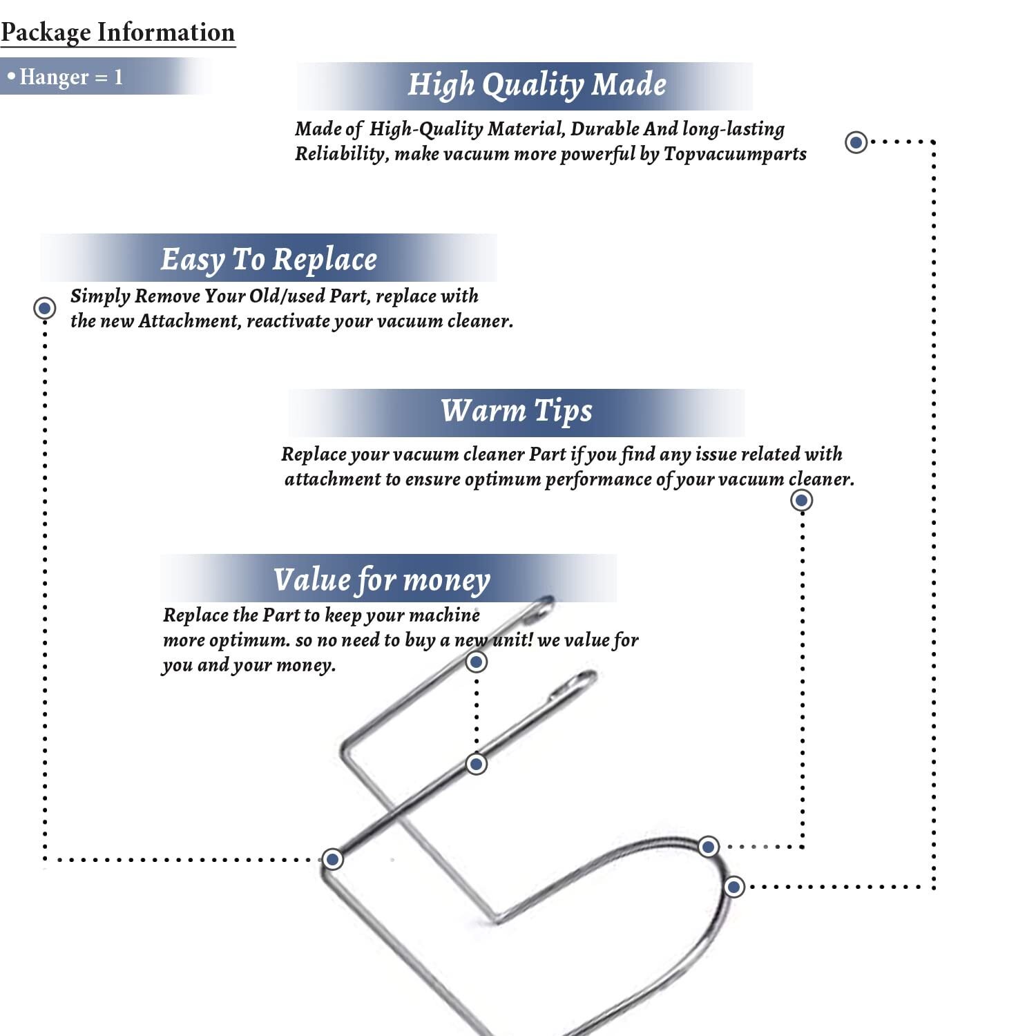 Replacement Part For Fit All Central Vac, Vacuum Cleaner Wire Hose Hanger # compare to part 06-1010-03 ✅Please order parts only if you see your vacuum model number is listed in this listing. ❌DO NOT ORDER BY ITS LOOKS or BY IMAGES OF PARTS. ✅Keep your space Safe & Organized. It holds the vacuum hose to keep it organized. ✅No more tripping over the hose or vacuum head ✅suitable For : Wall mount Hose hangers are Ideal for water hose, extension cords, air compressor hose, Welding leads, Vacuum hose. Perfect for garden , garage organization and industry. Description Fits In Models # Fits All Vacuum Hose (Universel Fit) SHIPPING - We offer FREE shipping on all orders! - We ship within 3 business days of payment, usually sooner - We use a selection of shipping services such as UPS, FedEx, USPS etc - We only ship to the lower 48 states, no APO/FPO addresses or PO Boxes allowed International buyers – please note: Import duties, taxes, and charges aren't included in the item price or postage cost. These charges are the buyer's responsibility. - Please check with your country's customs office to determine what these additional costs will be prior to bidding or buying. - We have confidence in our products, but if you are not fully satisfied please contact us within 30 days of purchase and you will get full refund. * Order Cancellation Policy ** You can return a product for up to 30 days from the date you purchased it. 1. The seller reserves the right to cancel the special case only due to eBay cancellation fee. 2. The decision of seller is the final. 3. The seller will respond to the cancellation request within 2 business days. Please wait for the result of cancellation. 4. In case the cancellation is not completed by some reasons, the buyer can follow the options below to get the refund. 4.1 The buyer can reject the item when it arrives. 4.2 The buyer can send the item back to the seller within 30 days If the buyer receives item (USA Shipment ONLY). The seller will provide the FREE return label to the buyer when the buyer opens " Return Item" case on eBay by using the reason as "Change my mind" ONLY. 5. When buyer has placed the order. The order will be processed and completed by automatic warehouse system within 5 minutes. In case that buyer sends the cancellation request after 5 minutes of placing the order, the request will be rejected. **Sending direct message to cancel the order is not allowed for every case.* Return Policy For the return case - If buyer would like to return the items for refund or replacement, please CONTACT SELLER to receive the free return label from seller. The refund or replacement will be processed with the tracking number of return label which is provided by seller only. The other ways of return which are not approved by seller will not be processed for the refund or replacement. CUSTOMER SERVICE - We try our best to make sure every customer is completely satisfied. - If there's a problem, feel free to message us! - We're happy to help.