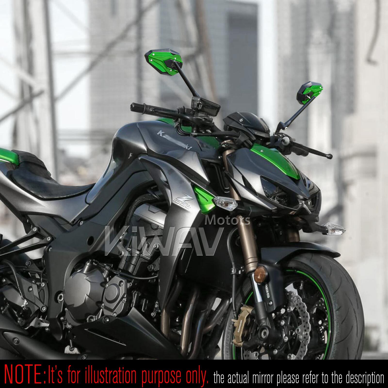 ViperII is E-mark approved. The mirrors housing is made out of CNC aluminum & ABS plastic and the stem is made of CNC aluminum. Diamond shape chrome convex lens gives a wide and clear view. ViperII all green rear view mirrors universal fit for 10mm mirror thread and Harley Davidson WARNING: Colors may vary depending on monitor profiles and printer settings. Video We have clear mini videos which shows more details and helps to visualize your modification before actually having it on hands. Your browser doesn't support HTML5 video. Download the video . Measurement Please must check the measurement before making final decision. Please allow measuring deviation due to manual measurement. Item size measurement graph Specification SKU: 100144019050040 Features Stylish designs for your custom applications. Unique ball joint, easily adjust this mirror. Wider vision with convex lens and stylish mirror plate gives it better look and feel. Pair of nicely CNC crafted eye catching diamond shape aluminum mirrors. Material Mirror Housing: CNC aluminum & ABS plastic Mirror Stem: CNC milled aluminum Shape Diamond / Other Glass Chrome convex lens Weight n.w.: 520 g./ 1.14 lbs. (pair), g.w.: 830 g./ 1.83 lbs. (total package, packing inclusive) Color Black mirror plate & green viper shape aluminum Adjustment Highly adjustable (two adjusting joints) Package A pair of mirrors (left hand / right hand), 8mm to 10mm standard (clockwise) thread adapter x 2 PCS, 8mm to 10mm reverse (counterclockwise) thread adapter x 1 PC, 5/16" thread adapter x 4 PCS. Compatibility 10mm(1.25 pitch): Universal compatible for 10mm thread motorcycles. Compatible for Harley Davidson '21 later Revolution® Max engine-equipped models, Nightster, Pan America, etc. 5/16": Compatible for most Harley Davidson. (except XG street models). Compatible for BMW R18 series models. aprilia BMW Buell BSA DUCATI Harley Davidson Honda Husqvarna Hyosung Indian Kawasaki KTM KYMCO MOTO GUZZI MV Agusta Norton Suzuki Triumph Victory YAMAHA KiWAV, kiwavMirror, kiwavmotor, motorcycle, ViperII, Viper2, universal, naked, mat black Allgreen, 10M, 5/16inch How do I know if these mirrors fit my bike? If you're not sure, there are a few tips for you. Q: How do I know the size of my mirror thread? Please remove your current stock mirror and measure the diameter of the bolt. Q: How do I know the mirror thread pitch of my bike? Most big bike mirror thread is 1.25mm pitch, there are certain BMW big bikes mirror thread is 1.5mm pitch. Here's how you could measure: Use a vernier caliper. Find a screw that you're sure is 1.25mm pitch. Try to compare the mirror thread of the two. If it fits, it will look like this. Rule of Thumb Most big bike mirrors have 10mm standard/clockwise thread. Some Yamaha/Ducati, however, have a reversed/anti-clockwise thread and a standard/clockwise thread. Reverse thread mostly found on the right hand side mirror (view from the bike seat). These 5/16" bolts are for Harley-Davidson only. 8mm are for most scooters' mirrors. Some Yamaha scooters have a reversed/anti-clockwise thread and a standard/clockwise thread. Reverse thread mostly found on the right hand side mirror (view from the bike seat). Check the bolt area of your bike, and the bottom of our mirror stem to see if they fit. Check with your motorcycle dealer, motorcycle forum or Google for the correct mirror thread. We Recommend About "We just love good products. If only those are fair priced, the world would just be a perfect place. That's what we're here for." KiWAV is built as a team of professionals, with expertise in different fields. We love beautiful products, fine handcrafted, great quality and state-of-the-art technology with human touch. We believe beauty is one of the best elements in our life, we also believe all human beings would love to live a good, beautiful and quality life. We build very fine quality and fine art products and link them to the world. It's not just the products we want to sell, it's the soul we want to connect, with you. Payment & Shipment We accept the following forms of payment: PayPal, and credit or debit card through eBay. For E-check payment, shipment will be made until PayPal indicates payment clear. We appreciate immediate payment. If payment is not received within 4 days after auction ended, unpaid item ( UPI ) will be automatically turned on to get the final value fee back. 24 hours Shipment will be arranged within 24 * hours after payment cleared. *Taiwan business days only. Shipping to address We ship to the address provided at checkout to comply with eBay policy. *If you need to change the address, please cancel the order before it ships and place a new one with the correct address. Warehouses We have 3 warehouses, Taipei, Taiwan; United States; Australia. Signature upon delivery Most shipping services we use may require a signature upon delivery. If you have special delivery requests, please let us know BEFORE placing your order. While we do our best to accommodate these requests, final delivery procedures are ultimately determined by the carrier. Wrap & Protection All items will be carefully wrapped for best protection. Duty / Tax Buyer is responsible for import duty/ tax if applicable. Important Tax & Customs Information for EU & UK Buyers eBay collects VAT at checkout for orders under the respective thresholds ( €150 for the EU and £135 for the UK ). For orders above these thresholds, you will be responsible for paying import duties, VAT, customs fees, and any other applicable charges directly to your local customs office or courier upon delivery . France is an exception, where eBay collects VAT at checkout for orders regardless of the total amount. Please check your country's customs regulations to understand the additional costs that may apply. By purchasing, you agree to cover these costs as required by your local customs office. Return Policy If you wish to return or exchange this product, please initiate return request via eBay o