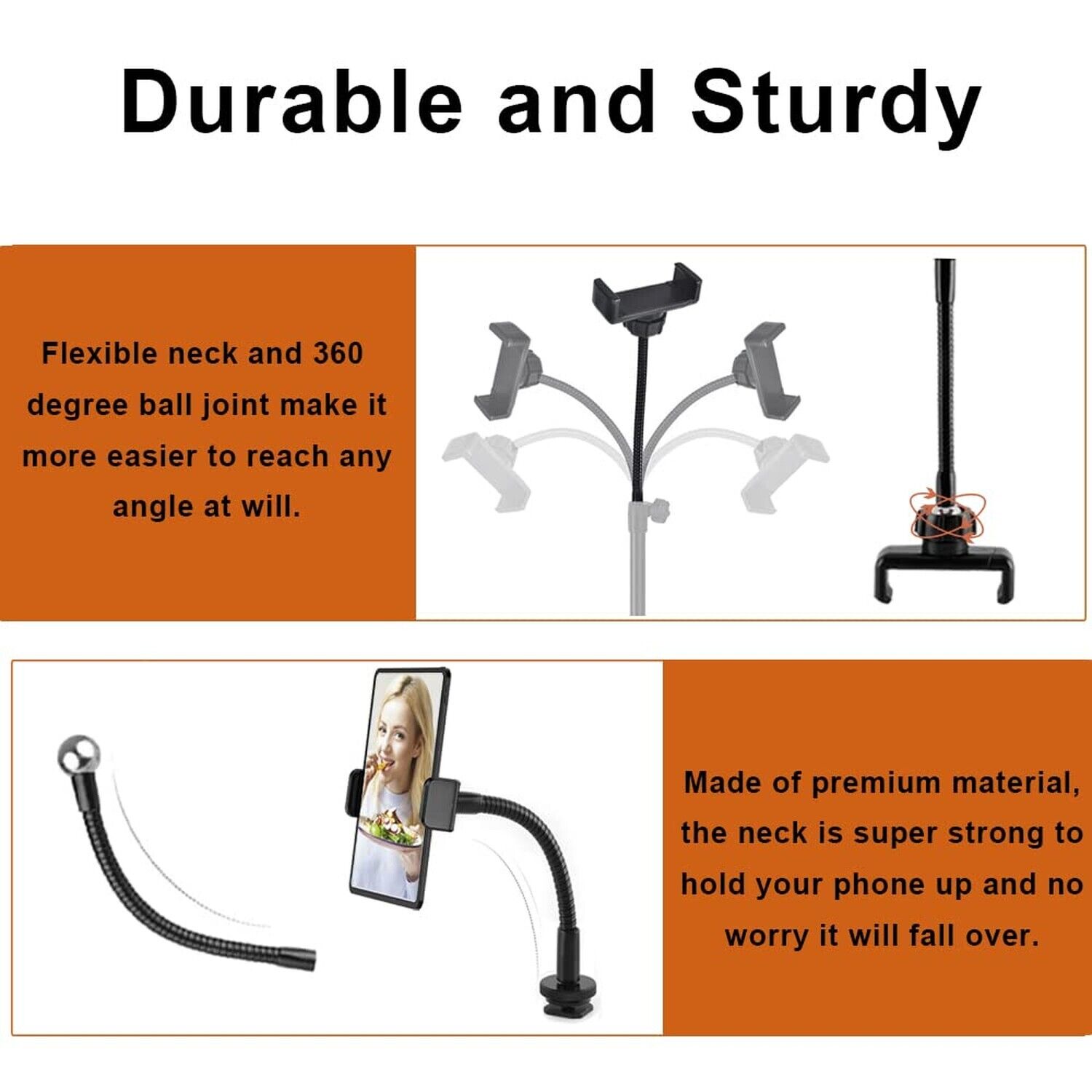 Universal Ring Light Phone Holder Attachment with Hot Shoe and 1/4 Threaded Adapter Flexible Cell Phone Mount for Ring Light and Tripod Stand Replacement Product Details Brand: JCWINY Color: One Pack Compatible Devices: IPhone 14/13/12/11 Pro Max/X/XR, Samsung, Huawei, Google Pixel or other mobile phones Compatible Phone Models: iPhone 13/12/11 Pro Max/X/XR, Samsung, Huawei, Google Pixel or other mobile phones Mounting Type: Phone Mount,Tripod Mount Product Dimensions: 6.3 x 3.54 x 2.76 inches Item Weight: 3.52 ounces Item model number: D13 Date First Available: February 21, 2022 Manufacturer: Surpass Country of Origin: China Detachable design and Fit Most DevicesThe ring light phone holder includes gooseneck arm with 1/4" female thread, hot shoe mount, 1/4" male to 1/4" male adapter and a universal phone holder. It works with your cell phones on your DSLR, ring light stands or any tripod stands. Compatible with Kaiess, Cyezcor, Ubeesize, selfila, Sensyne, Aixiangpai Ring light, tripod stand and etc. Flexible Ring Light Phone AttachmentThe ring light phone holder attachment is flexible with 15cm long soft metal tube and easy to be adjusted to an optional viewing angle for live stream, live broadcast, live show, selfie or video chat, or works as music light stand, desk lamp. Durable MaterialThe ring light phone mount is made of aluminium alloy, the gooseneck arm is super strong but incredibly flexible. You can twist and bend it any way you like. The plastic phone clamp with solid locking capabilities ensure the safety of your smart phone. Wide CompatibilityThe phone holder for ring light replacement is compatible with most of cellphones that within 2.28-3.34 inches (5.8-8.5 centimeter) such as iPhone 14/13/12/11 Pro Max/X/XR, Samsung, Huawei, Google Pixel or other mobile phones. Compact & PortableThis Phone Holder for Ring Light is small and compact, and easy to carry. A great ringlight phone holder attachment or replacement accessory.