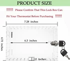Model 2 【Note: Must Read Before Purchasing】This thermostat lock box is designed to accommodate a wide range of thermostat sizes and types. The thermostat cover with an outer diameter of 7.28''*4.72''*2.2'' and an actual usable size of 6.5''*4.72''*2.2''(MAKE SURE YOUR THERMOSTAT SMALLER THAN THIS SIZE) 【Superior Protection】Our thermostat lock box with key is designed to prevent tampering, damage, and unauthorized adjustment of your thermostat settings. With its construction and included keys, ensuring your thermostat stays secure and your bills stay in check 【High-Quality Materials】Your thermostat deserves the best protection. Our thermostat cover is made from high-quality material. Not only is it resistant to UV rays, but it also prevents yellowing over time. With its sleek design, your thermostat will always look clean and beautiful 【Easy Installation】 Installing our thermostat guard is a breeze! The open design allows for installation without removing the thermostat from the wall. Whether you prefer a horizontal or vertical orientation, our guard can be easily adjusted to fit your thermostat perfectly 【Widely Application for Energy Control 】Our thermostat lock box isn't just for homes. It can be widely used in various places such as restaurants, offices, churches, schools, and even industrial environments. By keeping control over your energy use, you'll see significant savings while ensuring the temperature remains at the desired level Model 1 Universal Thermostat Lock Box:The thermostat cover with lock measures 7.28x2.48x4.72 inch (LxWxH), fits for: 5.9x4 inch (WxH), or smaller thermostat, suitable for all shapes of thermostats, ensuring optimal protection And safety. Warm reminder: Please confirm the size before purchasing. Superb and Durable Material:The thermostat lock box with key is made of high-quality acrylic material with exquisite workmanship, which has excellent durability, UV resistance, and anti-yellowing properties. It is not easy to be damaged or deformed, and has long-lasting durability and stability. Safeguard Your Thermostat:Lock box for thermostat on wall protects your thermostat from tampering, damage and unauthorized adjustments by children, tenants or the public. Helps to control energy usage to a great extent, helping you avoid high bills and save your home a lot of money. Two Installation Methods:We provide you with two installation methods: screw installation or adhesive installation. Screw mounting provides greater stability. Adhesive installation offers greater flexibility and requires no drilling into the wall. You can choose according to your needs. Multi-scene Applications:Ideal for homes, restaurants, schools, hotels, factories and other occasions to protect the thermostat from tampering, protect the thermostat and extend its service life. The thermostat cover with lock has high transparency, ventilation on all sides and good air permeability, which can prevent temperature detection from being interfered and ensure the accurate performance of the thermostat.