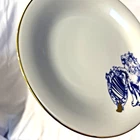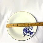 This beautiful and unusual salad plate from Kulturgut is a must-have for any collector. The round white porcelain plate has a diameter of 8.25 inches and features a stunning lion design inspired by Bavaria's Bayerns Lowen. The plate is an original 21st-century piece and is printed with the brand's backstamp. Hand wash only and perfect for any contemporary style setting, this plate is a great addition to any decorative cookware, dinnerware, and serveware collection. The set includes one plate and is an ideal choice for anyone who loves Bavarian culture. Cream background with blue lion design. Gold rim and design accent. 8.25" diameter. Maker's mark on back. Thank you for looking! 56893991024