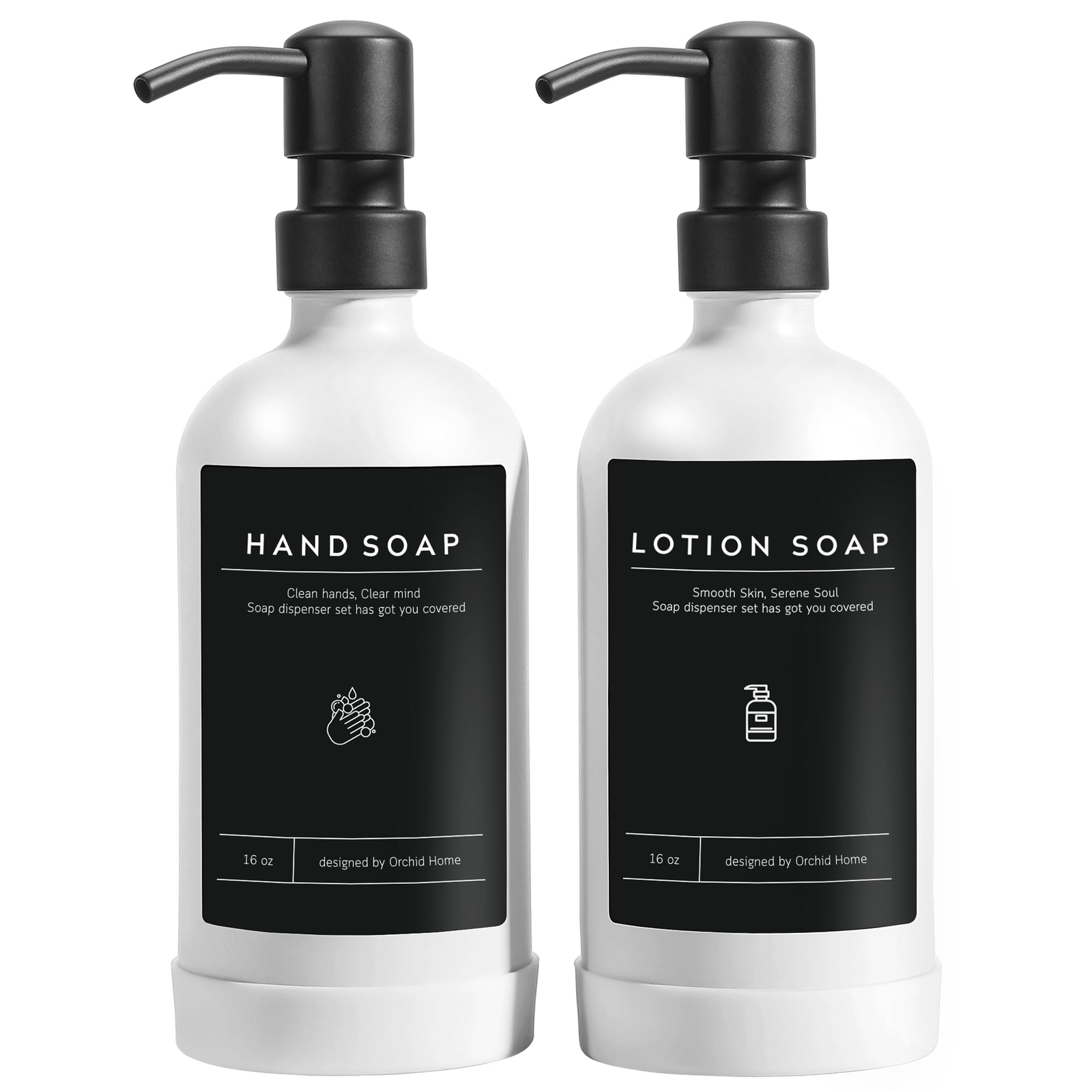 [Upgrade] Soap Dispenser Set, 16 OZ Glass Soap Dispenser with Stainless Steel Pump, 12 Waterproof Labels and Non-Slip Silicone Pad, Great Upgrades to Bathroom and Kitchen (White Bottle + Black Pump) ELEVATE YOUR SPACE WITH STYLE: ORCHID HOME soap dispenser set enhances both your bathroom and kitchen ambiance. Each dispenser features a unique waterproof label and comes with a non-slip pad. We believe these subtle improvements can transform your home CRAFTSMANSHIP IN EVERY DETAIL: Our glass bottles are meticulously crafted using top-tier materials, boasting a smooth surface and nearly imperceptible seams along the body. Even when filled with colored soap, the hue remains subtly understated. The durable 304 stainless steel pump ensures a seamless dispensing experience while guaranteeing an extended lifespan CHIC WATERPROOF LABEL DESIGN: Our thoughtfully designed set includes 12 black and white labels. Unlike common clichés in the market, we've approached label design from a new angle. These waterproof labels allow worry-free use near water, bringing a touch of innovation STABILITY MEETS ELEGANCE: To enhance stability, each dispenser's bottom features a non-slip silicone pad, preventing any wobbling and ensuring your favorite hand soap dispenser stays securely placed on countertops or sink edges EARTH-FRIENDLY REFILLS: Bid farewell to single-use plastic products. Our high-quality dish soap dispenser are designed for easy refill and reuse, embodying an eco-friendly philosophy IDEAL GIFT FOR SPECIAL MOMENTS: Whether you're searching for the perfect gift or adding a touch of luxury to your space, hesitate no more. The ORCHID HOME lotion dispenser set is undeniably an ideal gift for creating a cozy home or commemorating any special moment Introducing ORCHID HOME's Soap Dispenser Set – where style meets practicality, transforming your space into a sanctuary of sophistication and functionality. Crafted with meticulous attention to detail, our soap dispenser bathroom boast a seamless blend of elegance and utility, making them the perfect complement to your bathroom or kitchen. Why Orchid Home's Kitchen Soap Dispenser Set? Elevate Your Space: Redefine your surroundings with our chic dish soap dispenser. The unique waterproof labels add a touch of sophistication, while the non-slip pad ensures stability – a perfect fusion of style and practicality. Crafted to Perfection: Immerse yourself in luxury with our glass pump bottles, meticulously designed with top-tier materials. The smooth surface and discreet seams create a sleek aesthetic, and the durable 304 stainless steel pump guarantees a seamless dispensing experience. Chic Waterproof Labels: Break away from the ordinary with our set of 12 black and white waterproof labels. Unlike cliché designs, our labels bring a fresh perspective, allowing worry-free use near water – an innovative touch for your daily life. Stability Meets Elegance: Designed for stability, each liquid soap dispenser features a non-slip silicone pad at the bottom. Say goodbye to wobbling and hello to a securely placed soap dispenser on your countertops or sink edges. Earth-Friendly Refills: Embrace sustainability with our refillable dish detergent dispenser. Bid farewell to single-use plastic products and contribute to a greener environment while enjoying the convenience of easy refills. Ideal Gift for Special Moments: Whether you're searching for the perfect gift or adding a touch of luxury to your space, Orchid Home's Pump Dispenser Set is undeniably ideal. Create a cozy home or commemorate any special moment with this stylish and functional addition. Elevate your everyday routine with Orchid Home – where style, functionality, and eco-friendliness come together seamlessly. SHIPPING - We offer FREE shipping on all orders! - We ship within 3 business days of payment, usually sooner - We use a selection of shipping services such as UPS, FedEx, USPS etc - We only ship to the lower 48 states, no APO/FPO addresses or PO Boxes allowed International buyers – please note: Import duties, taxes, and charges aren't included in the item price or postage cost. These charges are the buyer's responsibility. - Please check with your country's customs office to determine what these additional costs will be prior to bidding or buying. - We have confidence in our products, but if you are not fully satisfied please contact us within 30 days of purchase and you will get full refund. * Order Cancellation Policy ** You can return a product for up to 30 days from the date you purchased it. 1. The seller reserves the right to cancel the special case only due to eBay cancellation fee. 2. The decision of seller is the final. 3. The seller will respond to the cancellation request within 2 business days. Please wait for the result of cancellation. 4. In case the cancellation is not completed by some reasons, the buyer can follow the options below to get the refund. 4.1 The buyer can reject the item when it arrives. 4.2 The buyer can send the item back to the seller within 30 days If the buyer receives item (USA Shipment ONLY). The seller will provide the FREE return label to the buyer when the buyer opens " Return Item" case on eBay by using the reason as "Change my mind" ONLY. 5. When buyer has placed the order. The order will be processed and completed by automatic warehouse system within 5 minutes. In case that buyer sends the cancellation request after 5 minutes of placing the order, the request will be rejected. **Sending direct message to cancel the order is not allowed for every case.* Return Policy For the return case - If buyer would like to return the items for refund or replacement, please CONTACT SELLER to receive the free return label from seller. The refund or replacement will be processed with the tracking number of return label which is provided by seller only. The other ways of return which are not approved by seller will not be processed for the refund or replacement. CUSTOMER SE