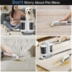 Specifications: Clean Water Capacity: 1250 ml Dust Water Capacity: 700 ml Hose Length: 5ft Power Cable Length: 15.8ft Rated Inlet Power: 500W Rated Voltage: 120V Rated Frequency: 50/60H Rated Current: 3.2A Max Suction: 18 Kpa Max Air Flow: 10 l/s Max Air Power: 40W Sound Noise: 75dB Waterproof: IPX 4 What’s in the Box: 1x Spot Cleaner Machine 1x Wide Brush Head 1x Narrow Brush Head POWERFUL SUCTION FOR QUICK REMOVAL: Our carpet cleaner machine and upholstery cleaner machine is equipped with an upgraded 500W motor and 18Kpa super suction, which can remove stubborn spots and stains like mud, wine, pet messes, and more from carpets, upholstery, and car interiors. It can quickly remove spills when they happen and give your home a new look. This carpet shampooer and furniture cleaner machine ensures your carpets and furniture stay spotless and fresh DUAL LARGE TANK: The upholstery cleaner machine and furniture cleaner machine features a 700ml dirty water tank and a 1250ml clean water tank, stored separately. This design allows you to easily disassemble the tanks for filling, draining, and cleaning. Tips: The water volume of the dirty tank can't exceed the MAX line, otherwise, it may cause the suction of the couch cleaner machine and spot cleaner for carpet and upholstery to stop. For stubborn stains, please use bubble-free detergent PORTABLE & EASY TO STORE: This portable carpet cleaner machine and small carpet cleaner machine comes with an ultra-long hose (4.8ft) and power cord (15.8ft). Lightweight and easy to move around, it can clean multiple surfaces throughout your home. The brush and power cord can be stored on the machine's hook to save space. It serves as an excellent spot cleaner for carpet and upholstery and spot cleaner machine, making it a versatile tool for your cleaning needs PERMANENT STAIN REMOVAL FOR FABRIC: The carpet cleaning machine and furniture cleaner machine is highly compatible and can clean carpets, sofas, blankets, stairs, mats, pet stains, and more. Its scope covers living rooms, kitchens, bathrooms, cars, bedrooms, offices, and other areas. This furniture cleaner machine and carpet spot cleaner machine is a very practical and multifunctional tool, ensuring thorough cleaning across various surfaces PACKAGE INCLUDES AND SERVICE: The package includes the main body of the carpet cleaner machine and spot cleaner machine, a 3.5” tough stain tool, a storage hook with a screw, and the user manual. If you have any questions about the carpet shampooer and furniture cleaner machine, please contact us in time. Our dedicated customer service team is ready to assist you with any concerns or inquiries