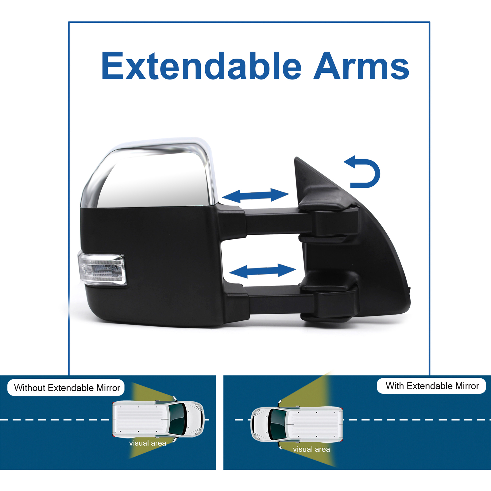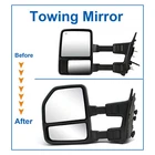 SAFE & SECURE SHOPPING 100% SATISFACTION GUARANTEED FAST SHIPPING Product Description Manual Adjustment Mirrors Manual extended telescoping wide angle mirrors (provide a better angle and parking in tight spots) Vehicle Fits 1999 2000 2001 2002 2003 2004 2005 2006 2007 Ford F-250 F-350 F-450 F-550 Super Duty Tow Mirrors Other Informations 1.Professional installation is hi ghly recommended. 2.These mirrors will only work properly on vehicles with these exact options. If your vehicle does not have the options listed, these mirrors may not function properly. 3. Any problem, please feel free to contact us, we will provide a perfect solution ASPS, thanks. Payment Returns Contact Us Payment PayPal is our preferred method of payment for all of our eBay sales. For customer service please contact us via eBay Messages. Immediate payment via PayPal is required for all Buy It Now items. For all Best Offers, payment is required within 3 days. If you need special arrangements, please contact us through eBay messages. After your order has been shipped, you will receive an e-mail with the name of the carrier and the tracking number. Returns Contact us through eBay messages or the returns link to receive a Returned Merchandise Authorization (RMA) number to ensure proper handling of the return and/or replacement. In order to be eligible for a full refund, less shipping expenses, your returned merchandise must be in its original new condition, as shipped, with all packaging, manuals, and paperwork intact and unaltered. Items which have been opened are returnable, however they will carry a restocking fee. If that product is returned for a refund, the shipping expenses incurred, will be deducted from the refund. If an item is refused, the carrier bills us for shipping both ways, and these expenses incurred on your behalf need to be deducted from your refund. Contact Us If you have a question about a part you should contact us before buying.And If you have any questions after purchase, please contact us and we will provide a satisfactory solution.