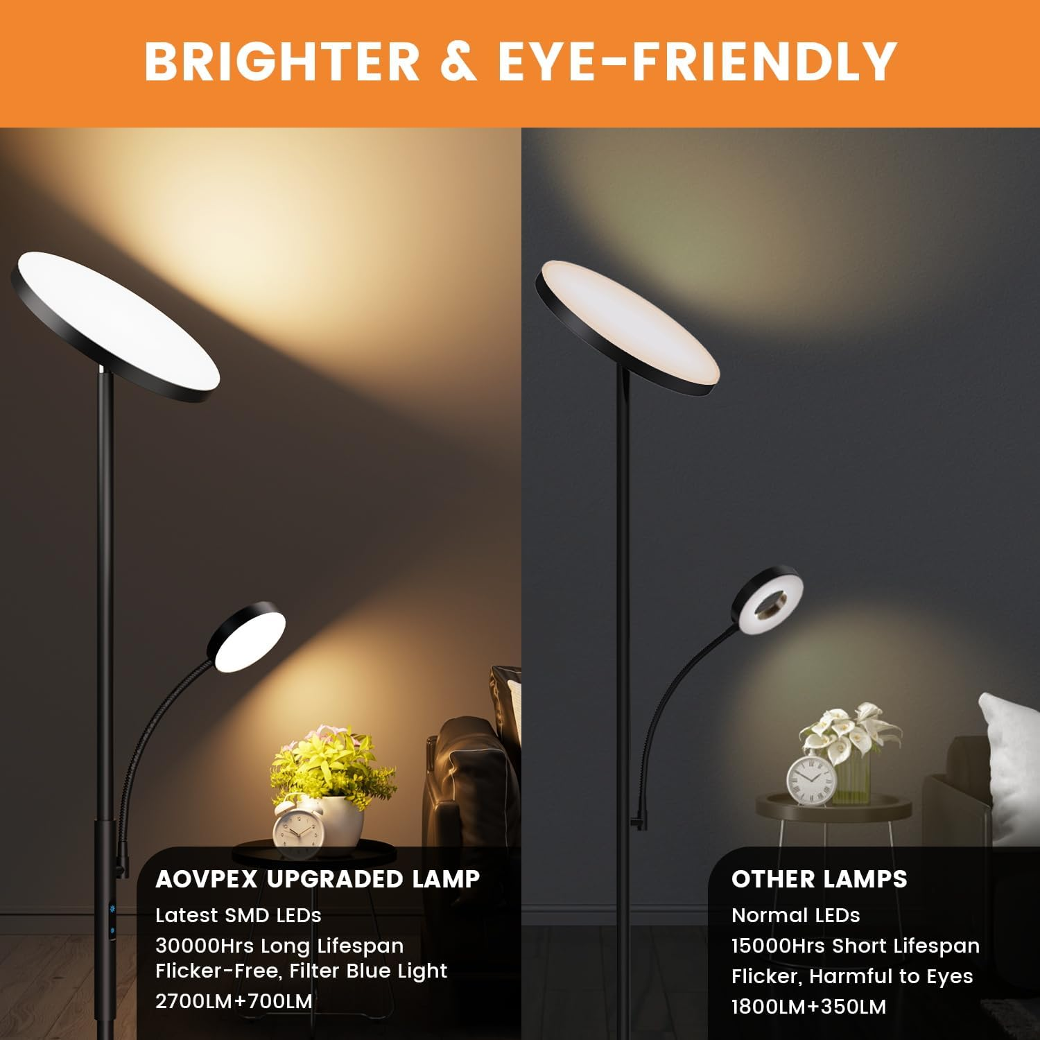 Store New Arrivals Add to Favorite View Feedback Contact Upgraded Torchiere Floor Lamps with Reading Light, Super Bright Floor Lamps, Dimmable 3000K-6000K LED Sky Standing Lamp, Tall Lamp with Remote & Touch Control for Living Room Bedroom Office Product Information Item model number MF18812 Light Source Type LED Style Floor lamp with reading light Number of Items 1 Power Source Corded Electric Number of Light Sources 1 Country of Origin China Batteries Included? No Lighting Method Adjustable Mounting Type Floor Mount Lamp Type Floor Lamp Controller Type Remote Control Room Type Office, Dinning Room, Bedroom, Living Room, Study Room Maximum Compatible Wattage 34 Watts Assembly Required Yes Installation Type Freestanding Average Life 30000 Hours Product Dimensions 9.5"D x 9.5"W x 69.9"H Material Aluminum, Acrylic Efficiency High Age Range (Description) Adult Finish Type Painted Specific Uses For Product General purpose Color Rendering Index (CRI) 85.00 Indoor/Outdoor Usage Indoor Brightness 2700 Lumen Control Method Remote, Touch Bulb Features Dimmable Water Resistance Level Not Water Resistant Batteries Required? No Item Weight 9.9 Pounds Connectivity Technology IR Special Features Remote Control, Touch Control, Adjustable Lighting Direction, Super Bright, 5%-100% Dimmable, 3000K/4000K/5000K/6000K Colors, Energy Efficient, Flexible Reading Light, Memory Function Special Feature Remote Control, Touch Control, Adjustable Lighting Direction, Super Bright, 5%-100% Dimmable, 3000K/4000K/5000K/6000K Colors, Energy Efficient, Flexible Reading Light, Memory Function Shade Color White Bulb Base Prong Bulb Shape Size B10 Color Temperature 3000 Kelvin Certification CE, RoHS Color Black Wattage 34 watts Is Cordless? No Base Material Aluminum Is Waterproof False Shape Torchiere Floor Lamp Voltage 110 Volts Recommended Uses For Product Torchiere floor lamp for bedroom, living room, office, light up a whole room with dimmable brightness and adjustable colors, perfect for a room without a overhead ceiling light, for working, reading, room lighting, no flicker, energy saving Shade Material Acrylic Finish types Painted Included Components 1x mother lamp head; 5x aluminum pole; 1x touch button parts with daughter lamp head; 1x lamp base; 1x power adapter; 1x user manual Switch Type Touch ABOUT US We are proud to be based in the United States, with all of our products shipping directly from within the country. Our selection includes home décor, furniture, sports equipment, tools, pet products, and more. If you have any questions about our products, we’re always happy to help. SHIPPING We are always working hard to ensure your package arrives as soon as possible. Please understand that some factors like weather, high postal traffic, and the performance of shipping companies are outside of our control. We offer free shipping to the lower 48 states and ship within 2 business days of payment, usually sooner. For shipping outside of the continental USA, we only use eBay's Global Shipping Program. The item is shipped to IL and then sent to the rest of the world. RETURNS We offer Free Returns for 30-Days on items which you are not completely satisfied with. You have the option for a full-refund or an exchange of the item. CUSTOMER SATISFACTION We try our very best to make sure every customer is completely satisfied. If there's a problem, message us! We're happy to help.