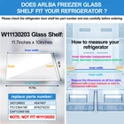 ✅【IMPORTANT NOTE】:Please make sure what is you need before purchase.The size of ARLBA W11130203 Freezer Glass Shelf is 11.7 inches(Length) X 10 inches (Width).Please NOTE that ARLBA W11130203 freezer glass shelf is installed on the freezing side of the Whirlpool refrigerator,located in the second position of the glass Shelf position on the top of the freezer.It is not suitable for the side of the refrigerator.Not suitable for part number W11130202. Please read our homepage and photos in detail ✅【Upgraded material】:ARLBA high-quality W11130203 freezer frame is made of high precision process 9H hardness Tempered Glass,3mm thickness reinforcement glass is reliable for wear resistance of fridge glass shelf,which is durability, strengthen,pollution-free,anti-scratches and scrapes.fridge glass shelf replacement have good bearing performance,can hold up to 30KG,stronger and tougher than ordinary materials.glass Shelf frame on both sides is made of food grade material,it is durable and safe. ✅【W11130203 Glass Shelf Replace Part Numbers】:This W11130203 freezer Glass Shelf replacement replace parts number:W10527849, W10773887, WPW10527849, AP6262440, PS12347522, EAP12347522, 4545866. .Not fit part number W11130202.This W11130203 freezer glass shelf fits on the freezer side of the Whirlpool refrigerator, the 2nd from the Freezer Top Glass Shelf position. It does NOT fit the refrigerator-side. Please check the Glass Shelf size and part number before ordering. ✅【Replace Brands and Models】:ARLBA W11130203 freezer Glass Shelf replacement for whirlpool KitchenAid and Ikea refrigerator freezer shelf parts.Fit models: WRS571CIDM00 WRS571CIDM01 WRS571CIDM02 WRS321CDBM00 WRS571CIDB00 WRS571CIDB01 WRS571CIDB02 WRS571CIDW00 WRS571CIDW01 WRS571CIHB00 WRS571CIHB01 WRS571CIHB02 WRS571CIHB04 WRS571CIHZ00 WRS571CIHZ04 WRS571CIHZ01 WRS571CIHZ02 WRS586FIEM04 WRS571CIHV00 WRS571CIHV01 WRS571CIHV02 WRS571CIHV04 WRS571CIHW00 WRS571CIHW02 WRS571CIHW01 WRS571CIHW04. ✅【Packaging Includes & Warranty】:1 X W11130203 freezer shelf glass for whirlpool refrigerator parts and 1 x fridge mats.( For whatever reason, if you are not satisfied, Please let us know, We will show you our sincere attitude and satisfactory solutions)