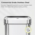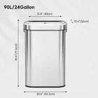 [Large Capacity] At 24Gal/90L, this stainless steel trash can suits both home and business environments, catering to diverse disposal requirements. [Effortless Trash Disposal and Cleanup] The wide open top trash can allows for easy trash disposal, while the detachable lid simplifies cleaning and bag changes, making the entire process a breeze. [Slim Space-Saver] This kitchen trash can features a sleek vertical design, allowing it to fit snugly against the wall and save space. [No More Messy Overhangs] The built-in plastic bag fixer keeps your trash bag securely in place, while the wide lid hides bags from sight, providing a cleaner, more organized visual appeal for your trash bin. [Easy Mobility] Equipped with practical side handles, moving this large trash can becomes effortless, facilitating hassle-free repositioning. [Secure Placement] The skid-resistant base provides stability, preventing the garbage can from slipping or moving unintentionally.