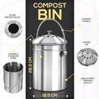 About this item With this compost bin, you can let the scraps build up during the week without worrying about bad smells into your home This compost bin having capacity of 1.3 gallon is manufactured with stainless steel for optimal longevity and durability that won't scratch, crack or chip The charcoal filters trap and control smell naturally in the bin so you can keep the compost bin in a handy place on your counter until the bin is full Sturdy, stylish and sleek design complements any decor so that this kitchen compost bin can sit conveniently on your counter-top or wherever you need it You can effortlessly clean the compost bin with warm, soapy water. To clean the charcoal filter, soak it in warm, soapy water, then rinse it thoroughly.
